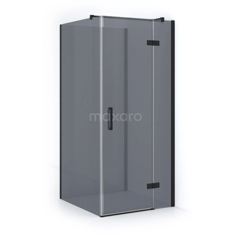 Duschkabine halb freistehend Matt Schwarz Perlmutt Rauchglas 100x90cm mit Drehtür