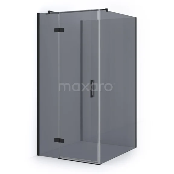 Duschkabine halb-freistehend Matt Schwarz Perlrauchglas 120x100cm mit Drehtür