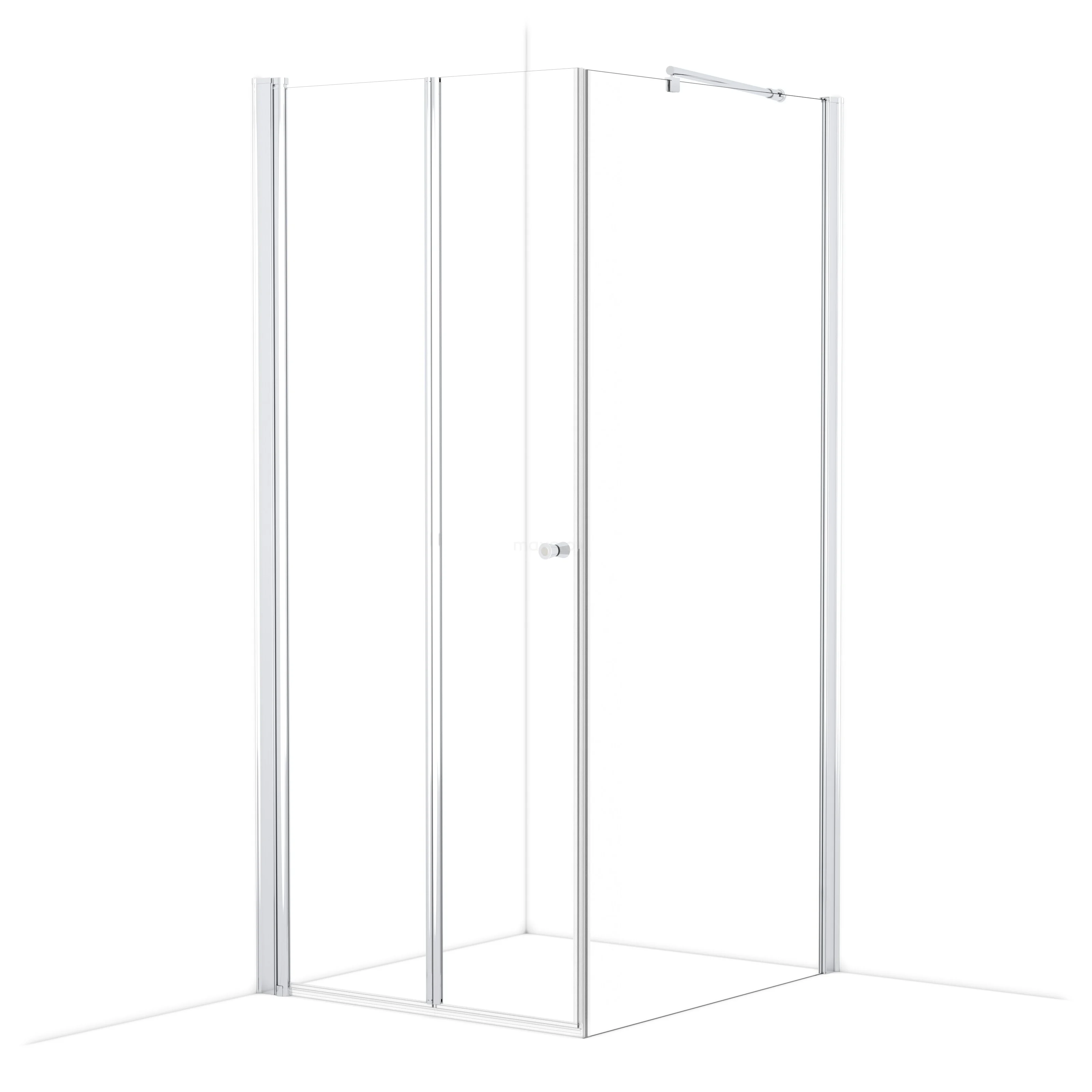De douchecabine is uitgerust met een vouwdeur en heeft geen uitzwaai, waardoor dit exemplaar ruimtebesparend is.