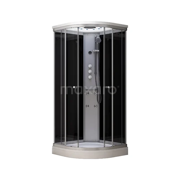 Design Dieser 80x80 cm große Viertelkreis ist kompakt und bietet Ihnen dennoch viel Bewegungsfreiheit. Sie steigen einfach über die Ecke ein und schließen die Schiebetüren mit einer sanften Bewegung. Da die Türen mit doppelten Click-out-Rädern ausgestattet sind, können Sie die Schienen leicht reinigen. Die Kabine hat 6 mm klares und schwarzes Sicherheitsglas. Zusammen mit dem silberfarbenen, pulverbeschichteten Rahmen entsteht ein moderner Look. Die Duschwanne und das Dach sind aus hochwertigem Mineralguss gefertigt.