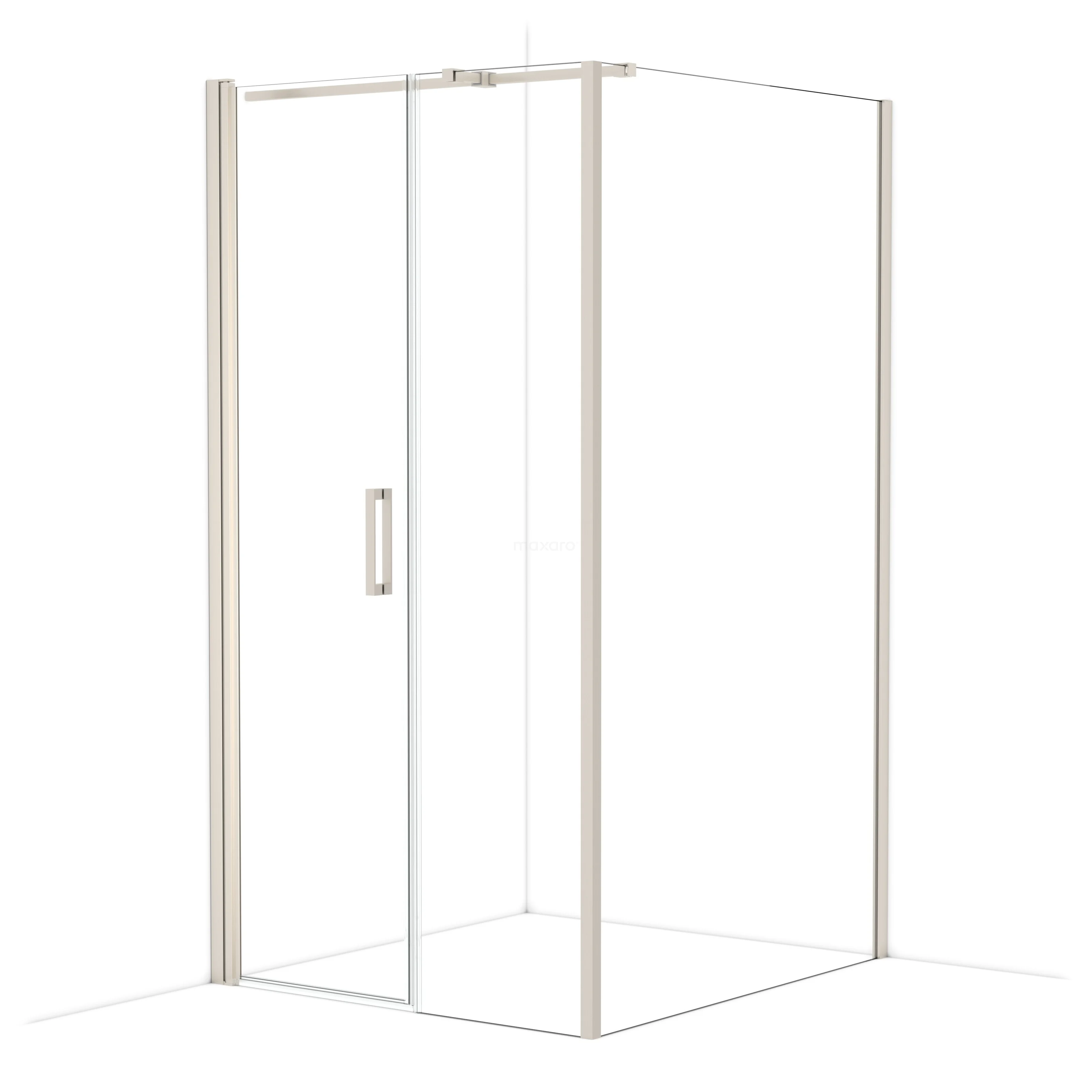 De douchecabine is uitgerust met een draaideur, waardoor u de volledige instapruimte ter beschikking heeft.