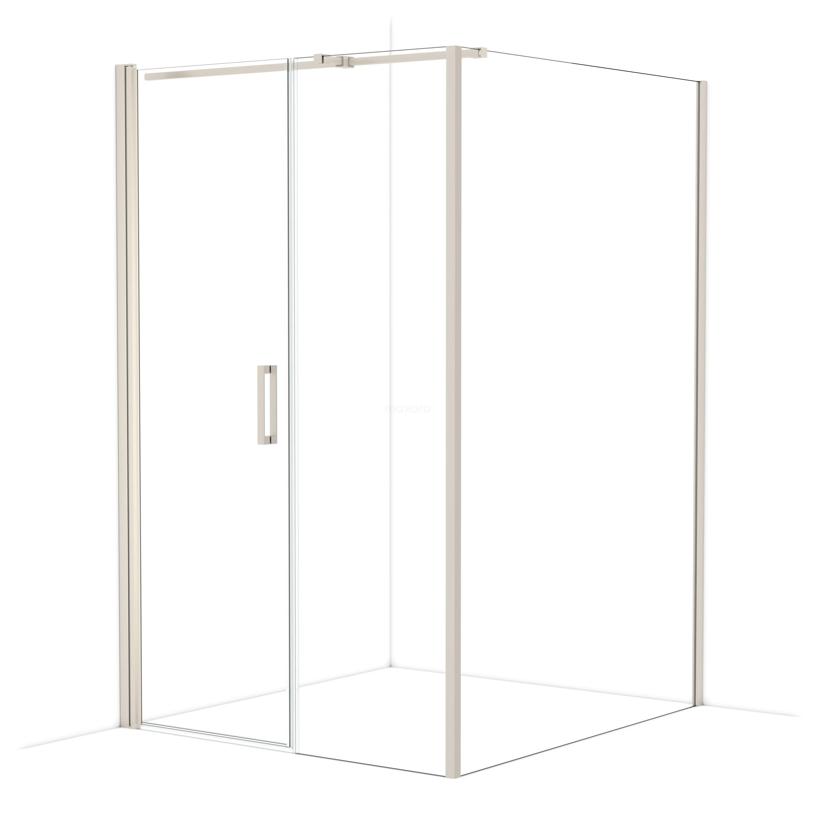 De douchecabine is uitgerust met een draaideur, waardoor u de volledige instapruimte ter beschikking heeft.