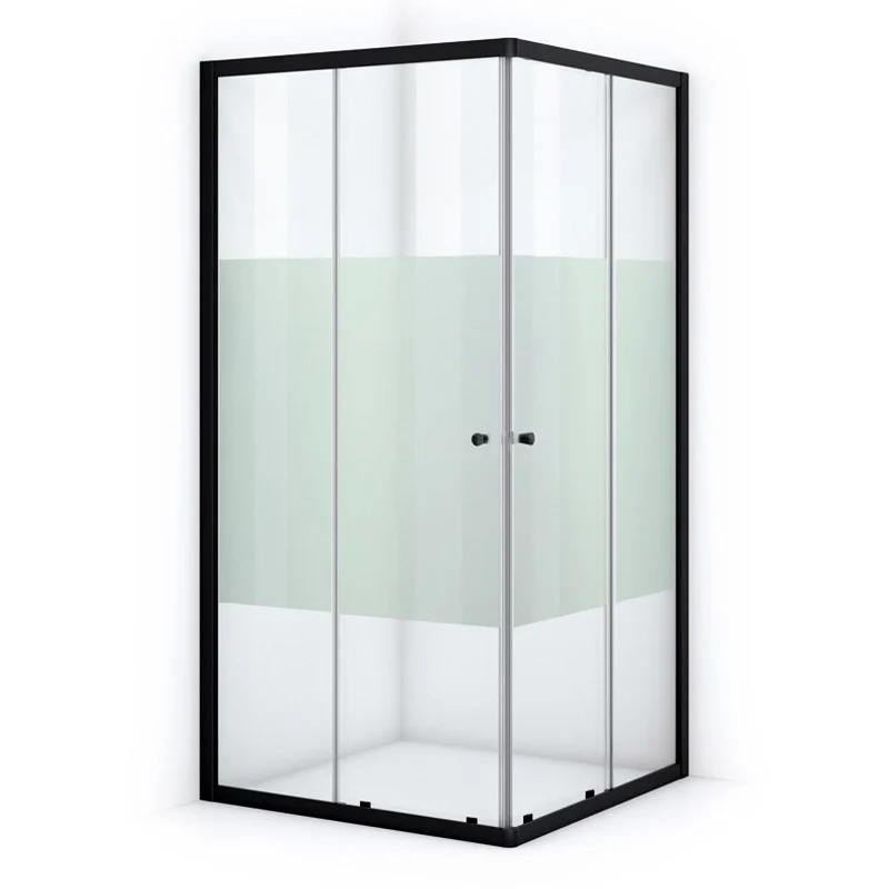 Die 100x100 cm große Duschkabine Ruby Allure bietet ein hervorragendes Preis-Leistungs-Verhältnis und sollte in Ihrem Badezimmer nicht fehlen. Diese quadratische Kabine zeichnet sich durch schlichte, mattschwarze Profile aus. Dank des Klarglases mit mattem Streifen erleben Sie einen luxuriösen Duschraum. Die Dusche ist verstellbar und lässt sich daher leicht montieren. Die linke Tür ist von 98 bis 100 cm und die rechte Tür von 98 bis 100 cm verstellbar. Dies ist die minimale und maximale Breite, einschließlich Wandprofil.