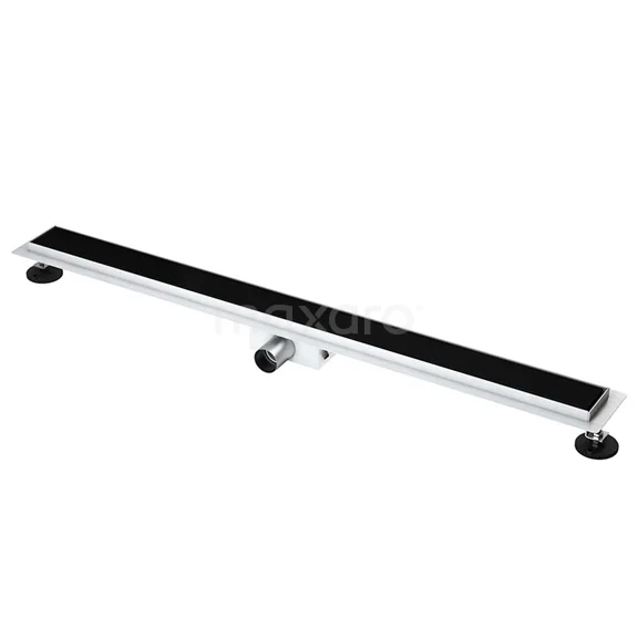 Edelstahl Duschrinne mit Flansch 100cm Glas Schwarz Gitterrost