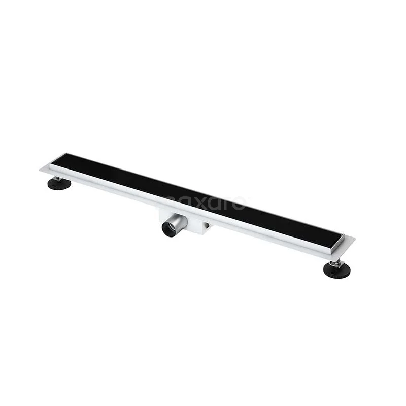 Edelstahl Duschrinne mit Flansch 80cm Glas Schwarz Gitterrost