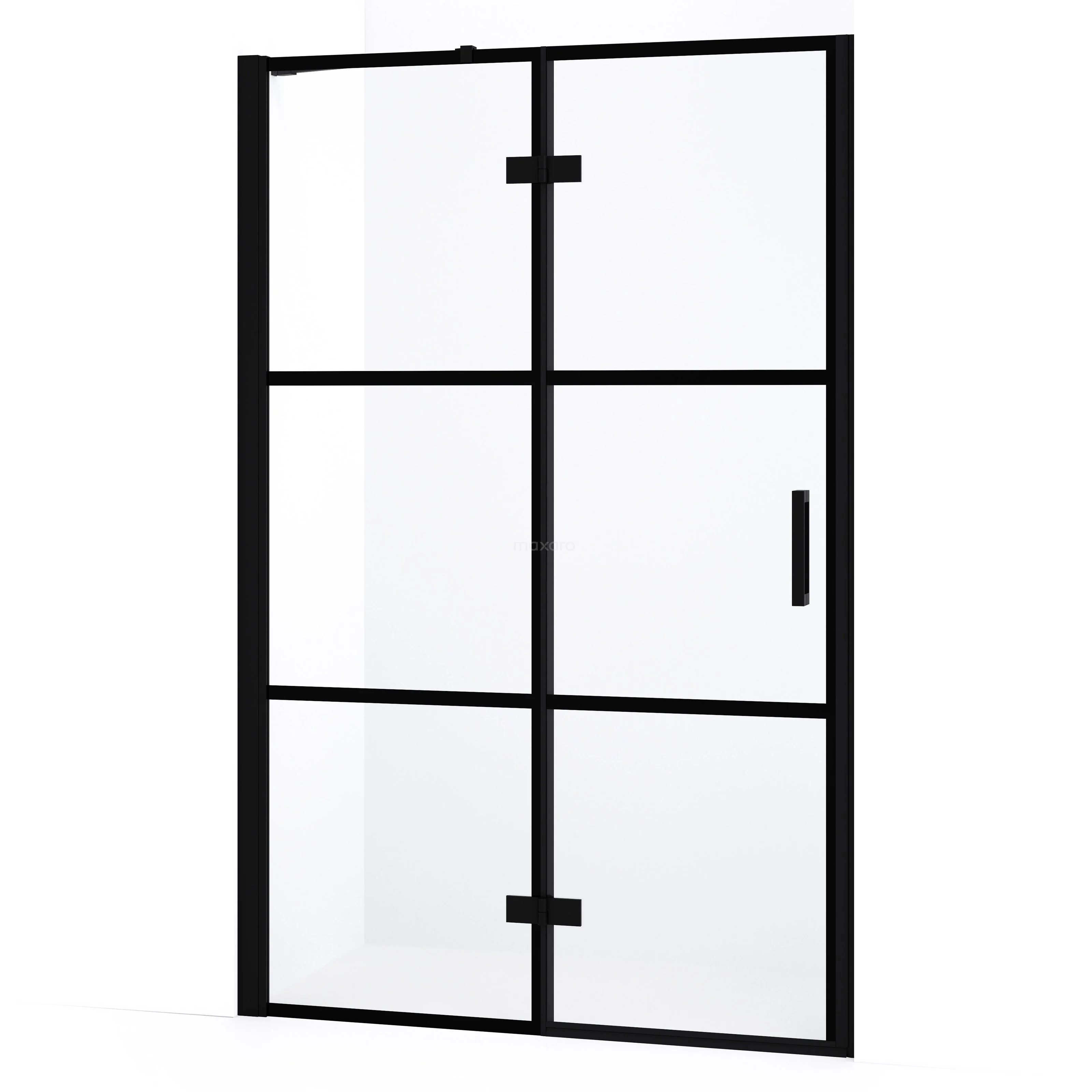 Diamond Duschtür | 110 cm Matt Schwarz Klar mit 4 schwarzen Streifen Drehtür