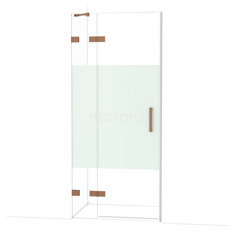 Die 90 cm lange Drehtür von Diamond ist ideal, um Ihren Duschbereich abzuschließen. Sie hat ein markantes Design aus glänzendem Kupfer und ist mit hochwertigen Scharnieren, einer Zweipunktbefestigung und einem vertikalen Griff ausgestattet. Das Klarglas mit mattem Streifen sorgt für mehr Privatsphäre. Durch die Verstellbarkeit lässt sich die Duschtür leicht anpassen. Die Gesamtbreite ist von 89,7 bis 90 cm verstellbar.