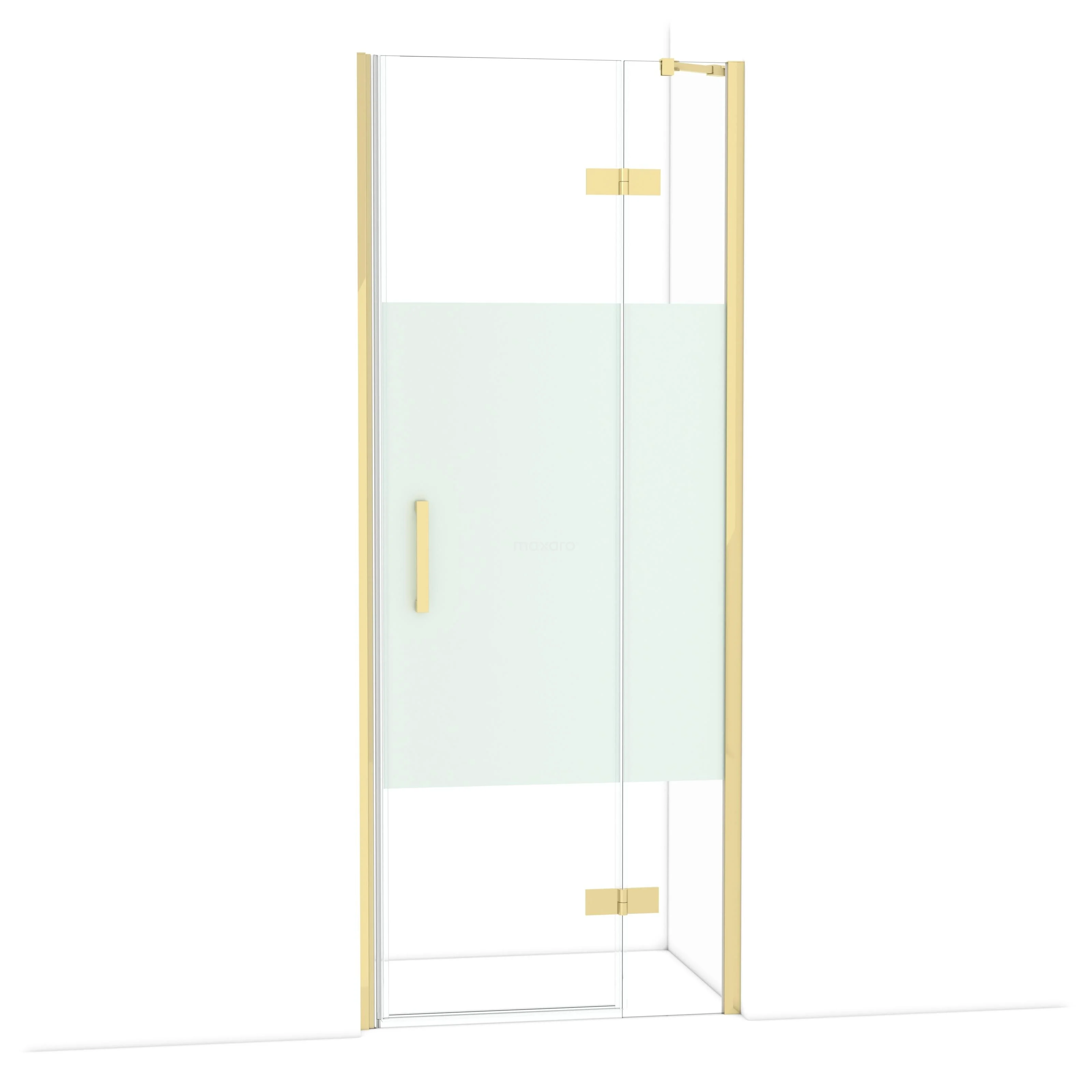 Die 80 cm lange Drehtür von Diamond ist ideal zum Abschließen Ihres Duschbereichs. Sie hat ein raffiniertes und luxuriöses Design in glänzendem Hellgold und verfügt über hochwertige Scharniere, ein Wandprofil und einen vertikalen Griff. Das Klarglas mit mattem Streifen sorgt für mehr Privatsphäre. Die Verstellbarkeit macht es einfach, die Duschtür zu montieren. Die Gesamtbreite ist von 81,8 bis 84 cm verstellbar.