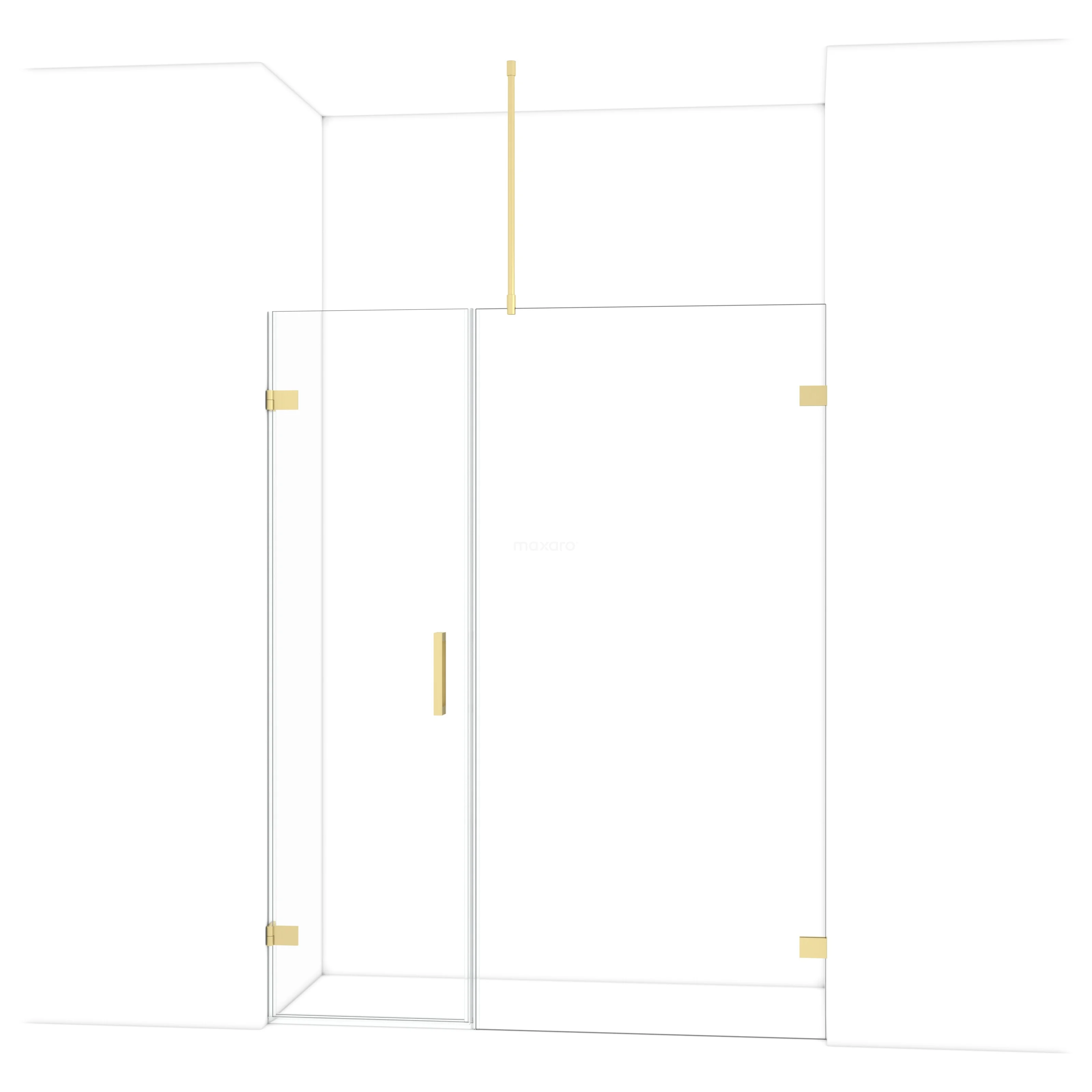 Die 155 cm lange Drehtür von Diamond ist ideal, um Ihren Duschbereich abzuschließen. Sie hat eine hellgoldene Oberfläche und ist mit hochwertigen Wandscharnieren und einem vertikalen Griff ausgestattet. Das Klarglas sorgt für ein großzügiges Raumgefühl. Die Verstellbarkeit macht es einfach, die Duschtür zu montieren. Die Gesamtbreite ist von 155,6 bis 155,9 cm verstellbar.