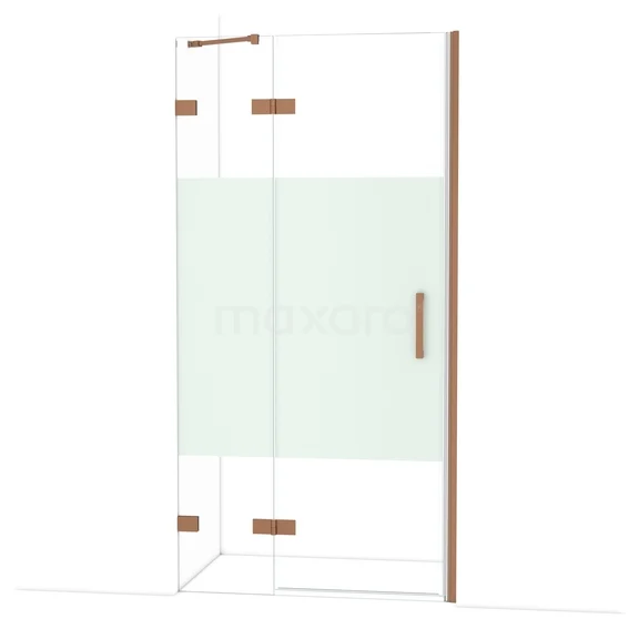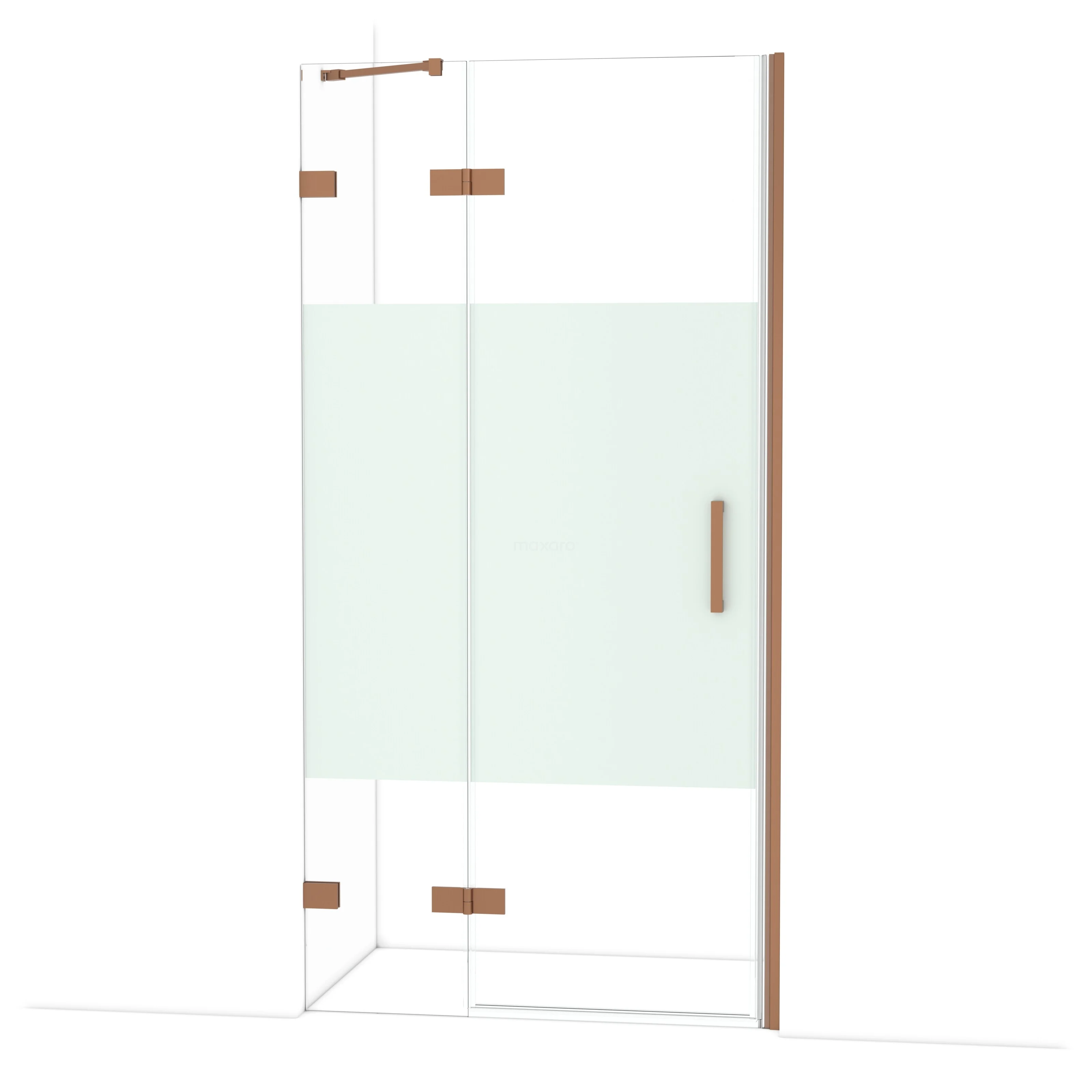 Die Drehtür Diamond 100 cm ist ideal für den Abschluss Ihres Duschbereichs. Sie ist in Kupfer ausgeführt und verfügt über hochwertige Scharniere, eine Zwei-Punkt-Befestigung und einen vertikalen Griff. Das Klarglas mit mattem Streifen sorgt für Privatsphäre. Durch die Verstellbarkeit lässt sich die Duschtür leicht anpassen. Die Gesamtbreite ist von 101,7 bis 102,7 cm verstellbar.