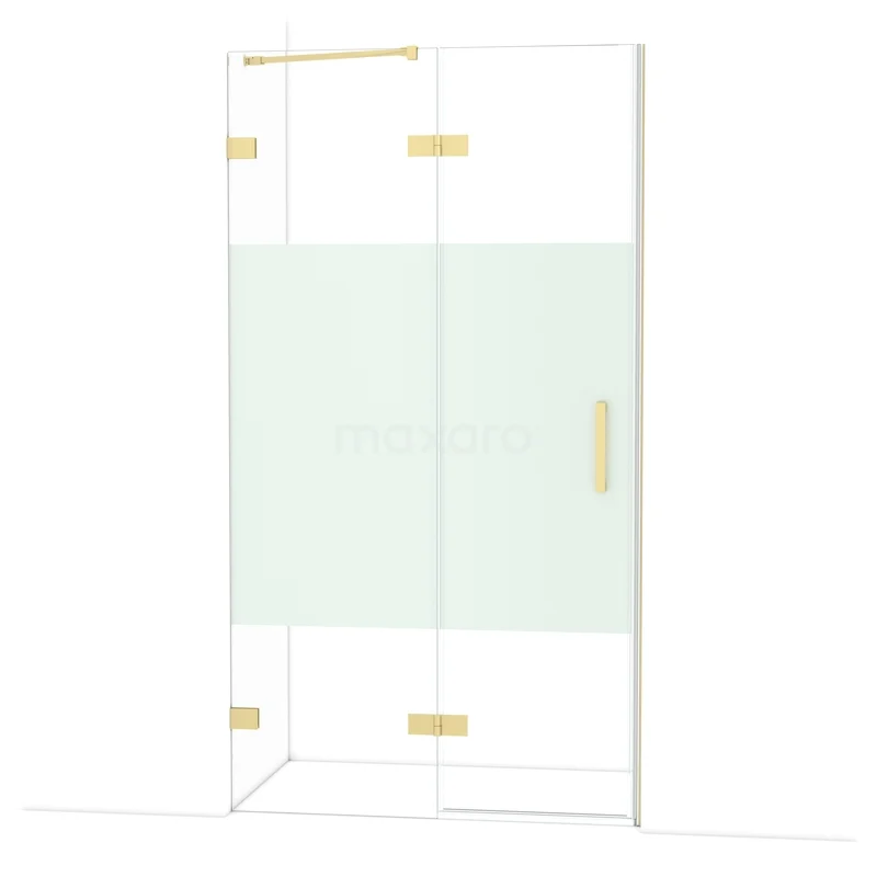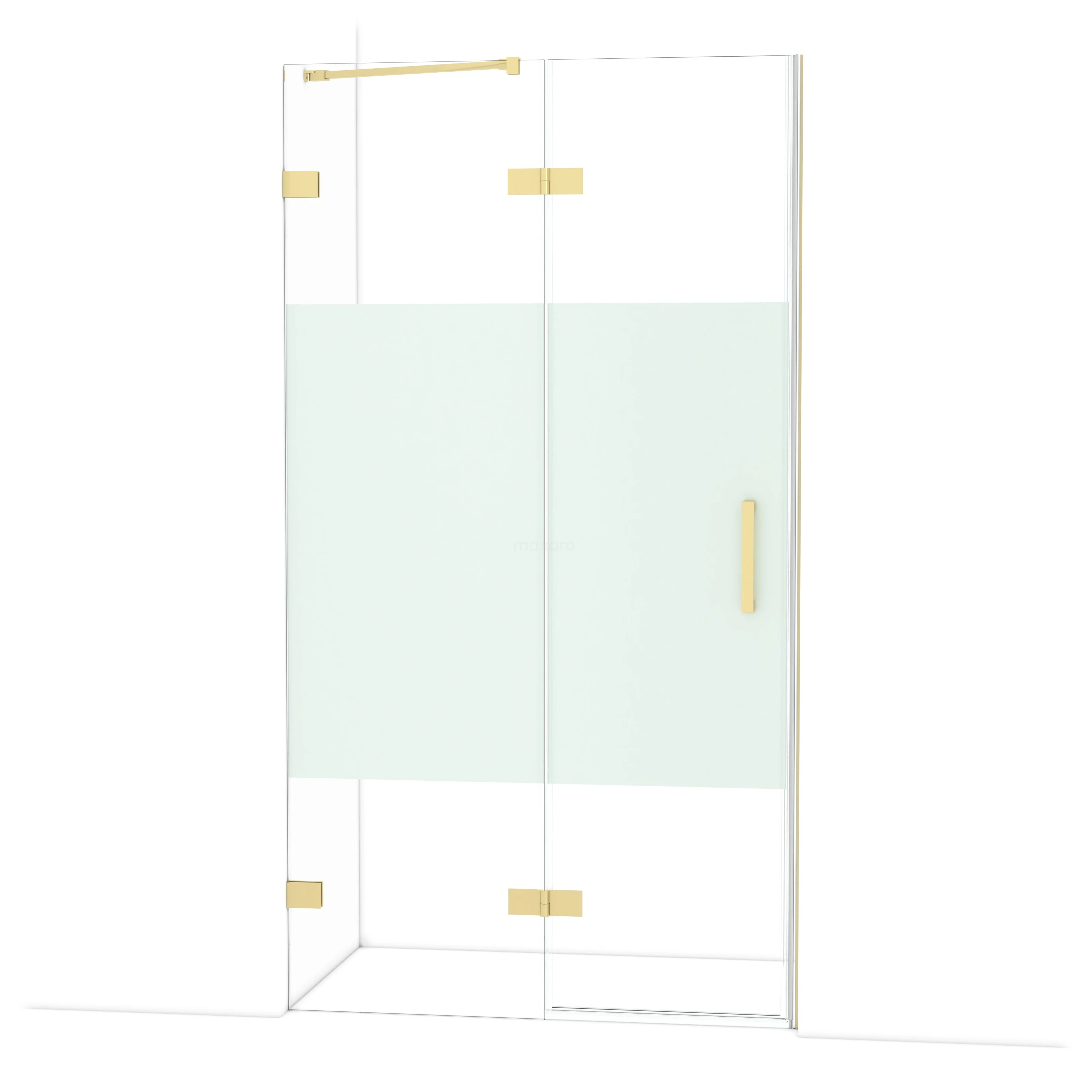 Die 110 cm lange Drehtür von Diamond ist ideal für den Abschluss Ihrer Duschnische. Sie hat eine hellgoldene Oberfläche und verfügt über hochwertige Scharniere, eine Zwei-Punkt-Befestigung und einen vertikalen Griff. Das Klarglas mit Milchglasstreifen sorgt für mehr Privatsphäre. Die Verstellbarkeit macht es einfach, die Duschtür zu montieren. Die Gesamtbreite ist von 109,7 bis 110 cm verstellbar.