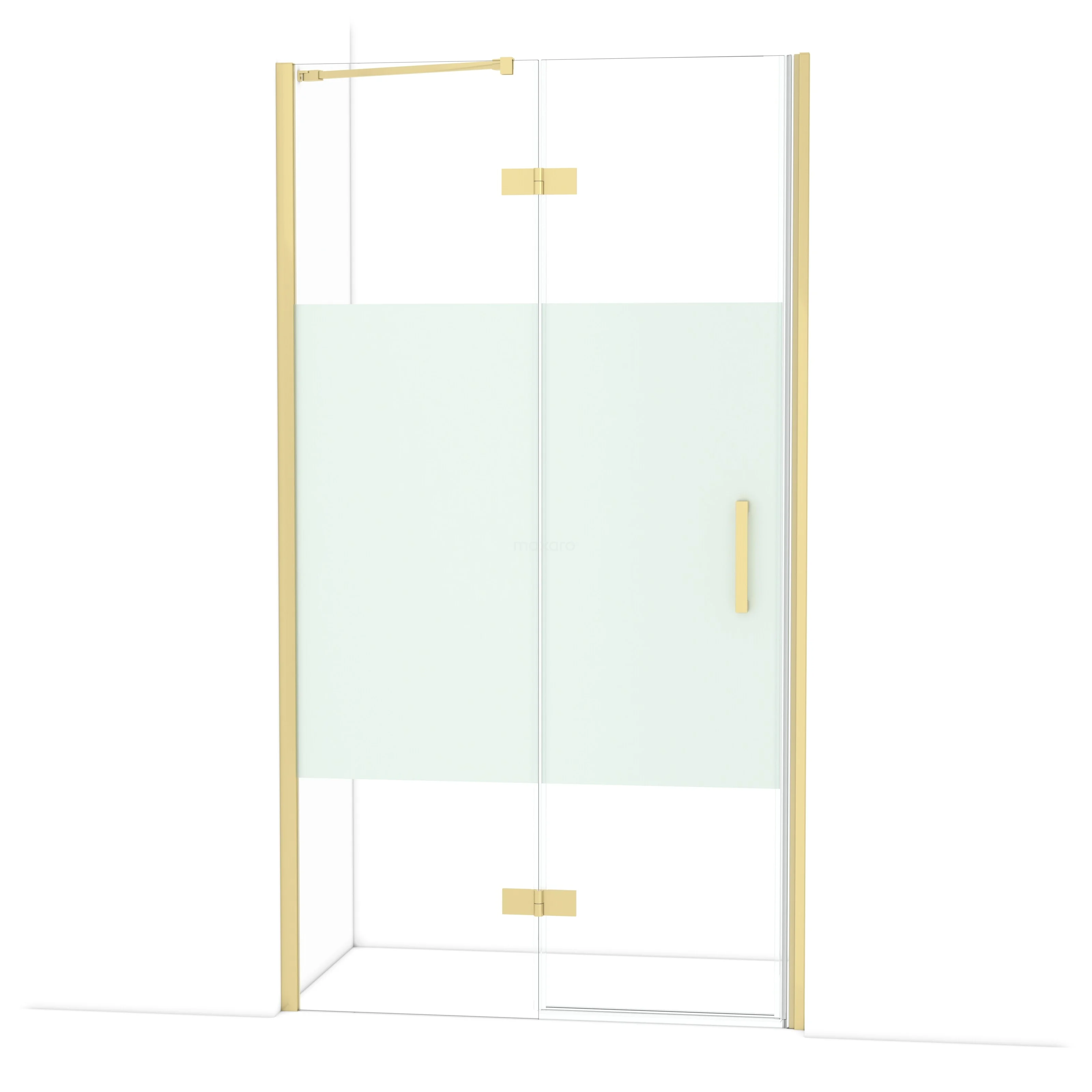 Die 110 cm lange Drehtür von Diamond ist ideal, um Ihren Duschbereich abzuschließen. Sie hat eine hellgoldene Oberfläche und ist mit hochwertigen Scharnieren, einem Wandprofil und einem vertikalen Griff ausgestattet. Das Klarglas mit mattem Streifen sorgt für mehr Privatsphäre. Die Verstellbarkeit macht es einfach, die Duschtür zu montieren. Die Gesamtbreite ist von 111,8 bis 114 cm verstellbar.