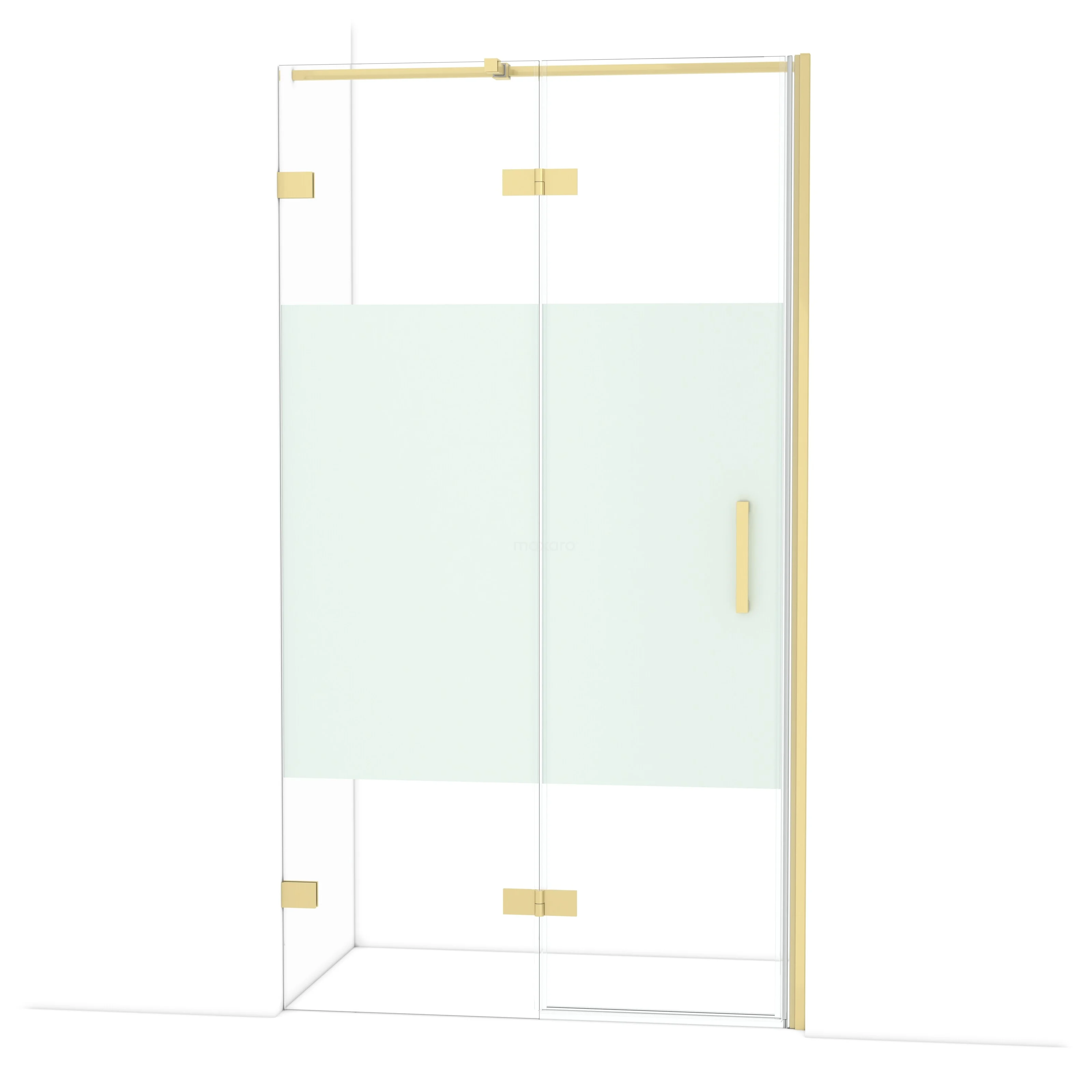Die 110 cm lange Drehtür Diamond ist ideal für den Abschluss Ihrer Duschnische. Sie hat eine hellgoldene Oberfläche und verfügt über hochwertige Scharniere, eine Zwei-Punkt-Befestigung und einen vertikalen Griff. Das Klarglas mit mattiertem Streifen sorgt für mehr Privatsphäre. Die Verstellbarkeit macht es einfach, die Duschtür zu montieren. Die Gesamtbreite ist von 111,7 bis 112,7 cm verstellbar.