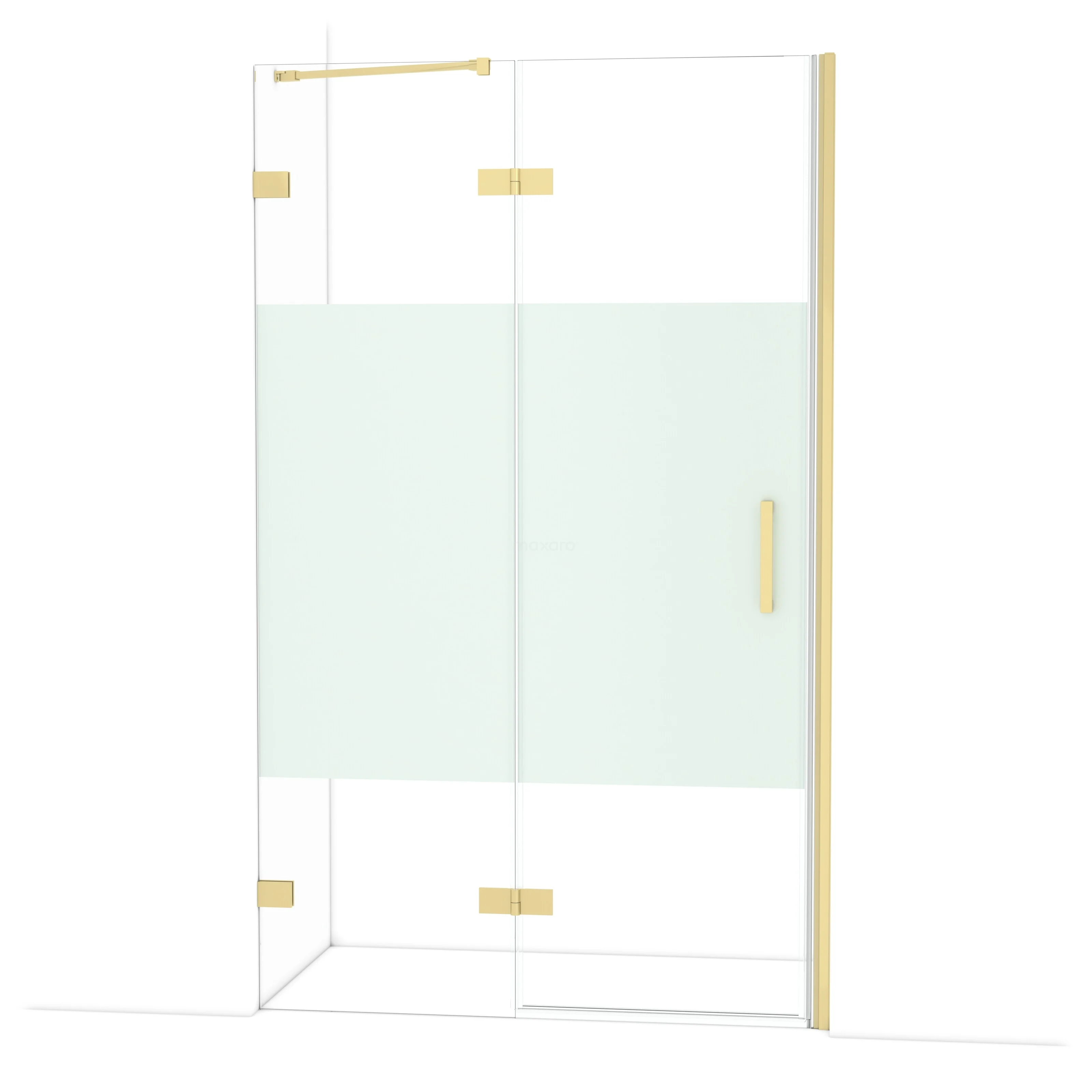 Die 120 cm lange Drehtür von Diamond ist ideal, um Ihren Duschbereich abzuschließen. Sie hat eine hellgoldene Oberfläche und ist mit hochwertigen Scharnieren, einer Zwei-Punkt-Befestigung und einem vertikalen Griff ausgestattet. Das Klarglas mit mattiertem Streifen sorgt für mehr Privatsphäre. Die Verstellbarkeit macht es einfach, die Duschtür zu montieren. Die Gesamtbreite ist von 121,7 bis 122,7 cm verstellbar.