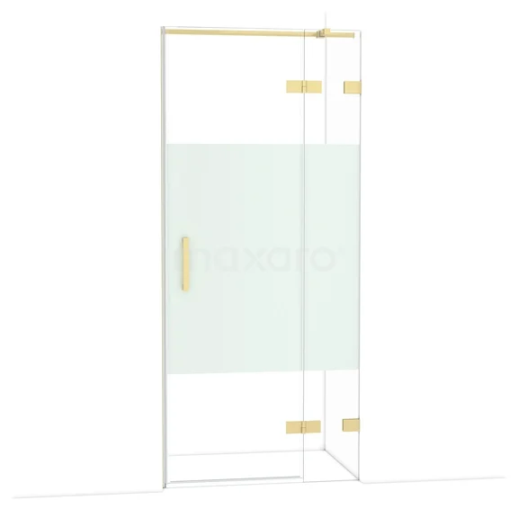 Die 90 cm lange Drehtür Diamond ist ideal für den Abschluss Ihrer Duschnische. Sie hat eine hellgoldene Oberfläche und ist mit hochwertigen Scharnieren, einer Zwei-Punkt-Befestigung und einem vertikalen Griff ausgestattet. Das Klarglas mit mattiertem Streifen sorgt für mehr Privatsphäre. Die Verstellbarkeit macht es einfach, die Duschtür zu montieren. Die Gesamtbreite ist von 89,7 bis 90 cm verstellbar.