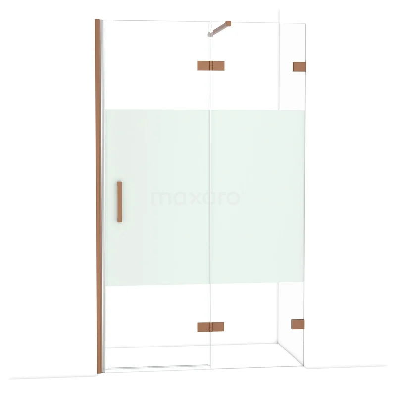 Die Diamond-Drehtür von 120 cm ist ideal, um deine Duschnis abzuschließen. Dieses Exemplar ist in Kupfer ausgeführt und verfügt über hochwertige Scharniere, eine Zweipunktbefestigung und einen vertikalen Griff. Das Klarglas mit matter Streifen sorgt für mehr Privatsphäre. Durch die Verstellbarkeit lässt sich die Duschtür leicht anpassen. Die Gesamtbreite ist von 121,7 bis 122,7 cm verstellbar.