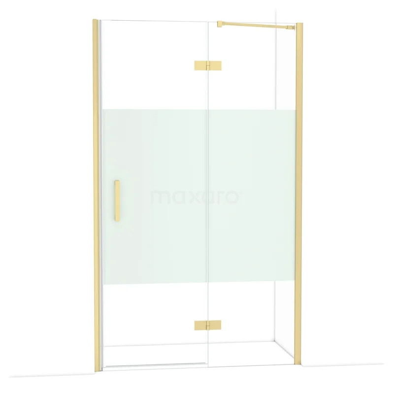 Die Diamond-Drehtür von 120 cm ist ideal, um deine Duschnis zu schließen. Dieses Exemplar hat eine leicht goldene Oberfläche und ist mit hochwertigen Scharnieren, Wandprofil und einem vertikalen Griff ausgestattet. Das Klarglas mit matter Streifen sorgt für mehr Privatsphäre. Durch die Verstellbarkeit lässt sich die Duschtür leicht anpassen. Die Gesamtbreite ist von 121,8 bis einschließlich 124 cm verstellbar.