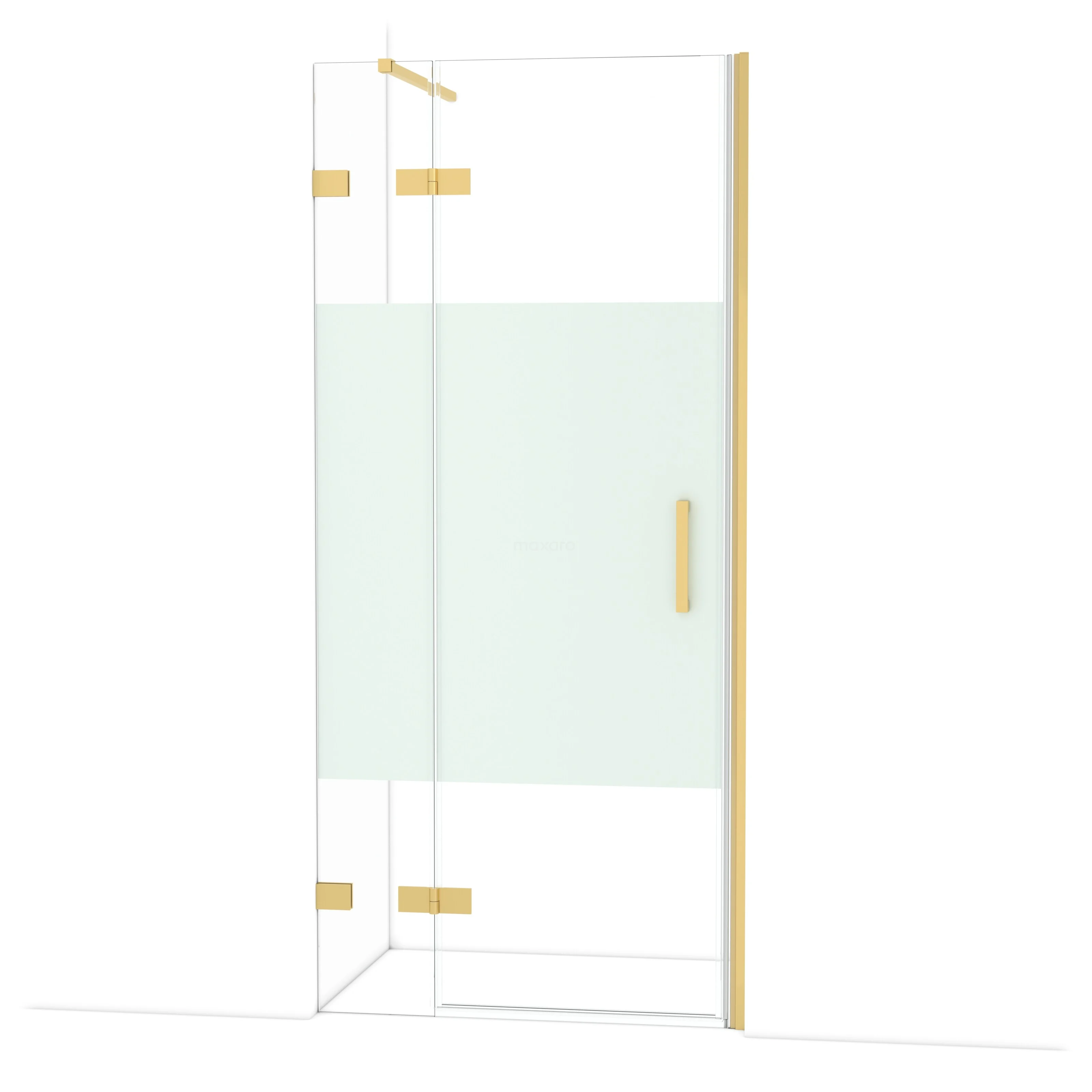 Die Diamond-Drehtür von 90 cm ist ideal, um deine Dusche abzuschließen. Dieses Exemplar hat ein luxuriöses Design aus Gold und ist mit hochwertigen Scharnieren, einer Zweipunktbefestigung und einem vertikalen Griff ausgestattet. Das Klarglas mit matter Streifen sorgt für mehr Privatsphäre. Durch die Verstellbarkeit lässt sich die Duschtür leicht anpassen. Die Gesamtbreite ist von 91,7 bis 92,7 cm verstellbar.