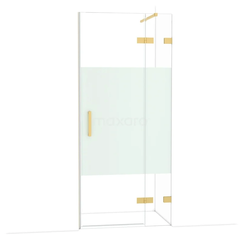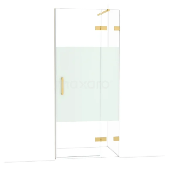 Die Diamond-Drehtür von 90 cm ist ideal, um deine Dusche abzuschließen. Dieses Exemplar hat ein luxuriöses Design aus Gold und ist mit hochwertigen Scharnieren, einer Zweipunktbefestigung und einem vertikalen Griff ausgestattet. Das Klarglas mit mattem Streifen sorgt für mehr Privatsphäre. Durch die Verstellbarkeit lässt sich die Duschtür einfach anpassen. Die Gesamtbreite ist von 89,7 bis 90 cm verstellbar.