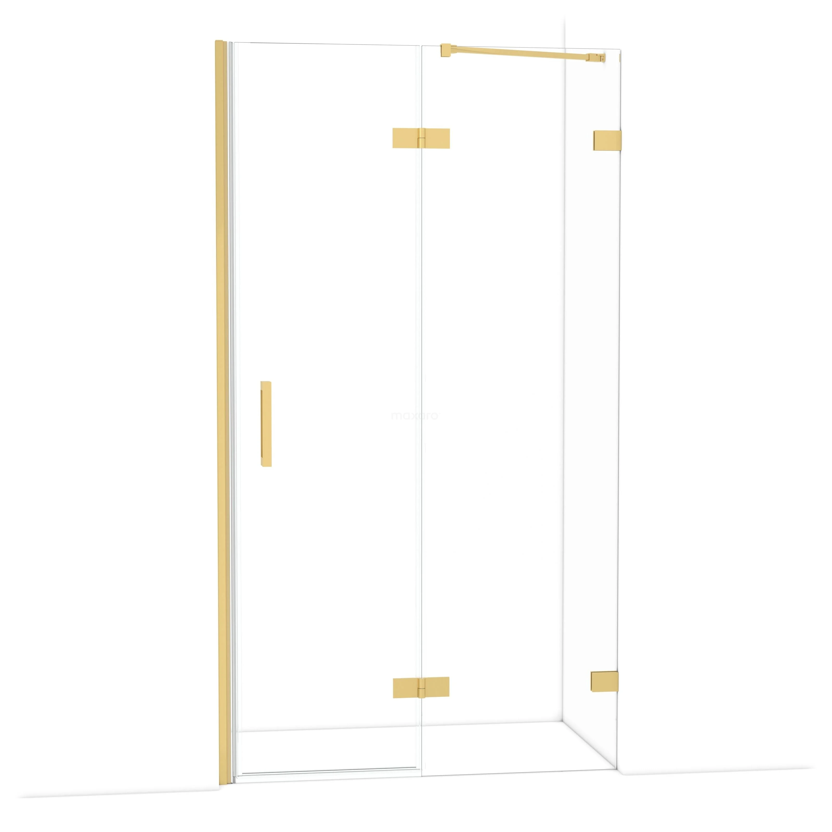 Die Diamond-Drehtür von 110 cm ist ideal, um deine Duschnis abzuschließen. Dieses Exemplar hat ein luxuriöses Design aus Gold und ist mit hochwertigen Scharnieren, einer Zweipunktbefestigung und einem vertikalen Griff ausgestattet. Das Klarglas sorgt für ein räumliches Gefühl. Durch die Verstellbarkeit lässt sich die Duschtür leicht anpassen. Die Gesamtbreite ist von 111,7 bis 112,7 cm verstellbar.