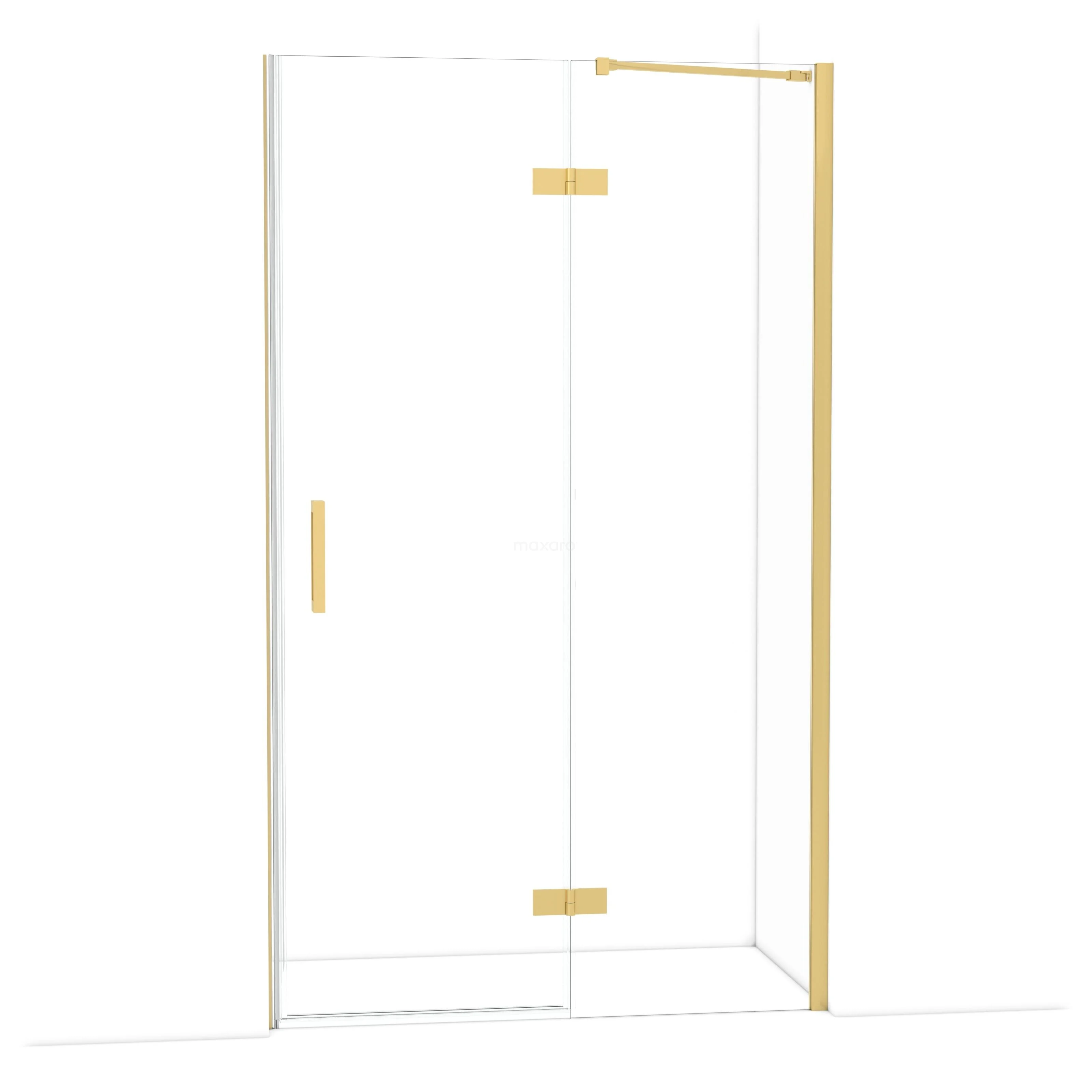 Die Diamond-Drehtür von 120 cm ist ideal, um deine Dusche abzuschließen. Dieses Exemplar hat ein luxuriöses Design aus Gold und ist mit hochwertigen Scharnieren, Wandprofil und einem vertikalen Griff ausgestattet. Das Klarglas sorgt für ein räumliches Gefühl. Durch die Verstellbarkeit lässt sich die Duschtür leicht anpassen. Die Gesamtbreite ist von 119,8 bis 121,3 cm verstellbar.