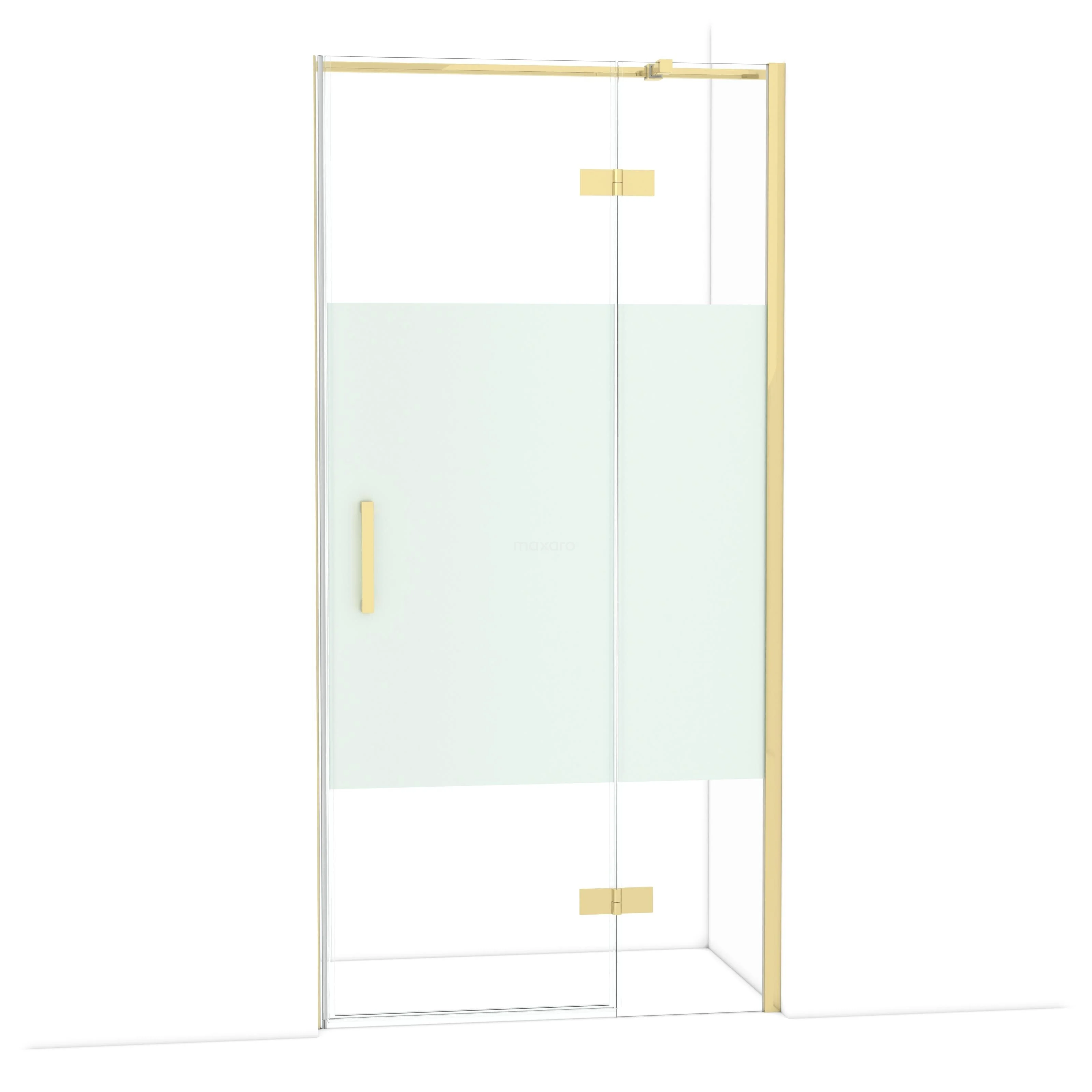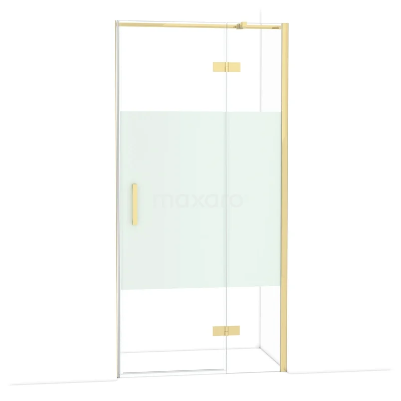 Diamond Duschtür | 100 cm Glänzendes Hellgold Klar mit matter Streifen Drehtür