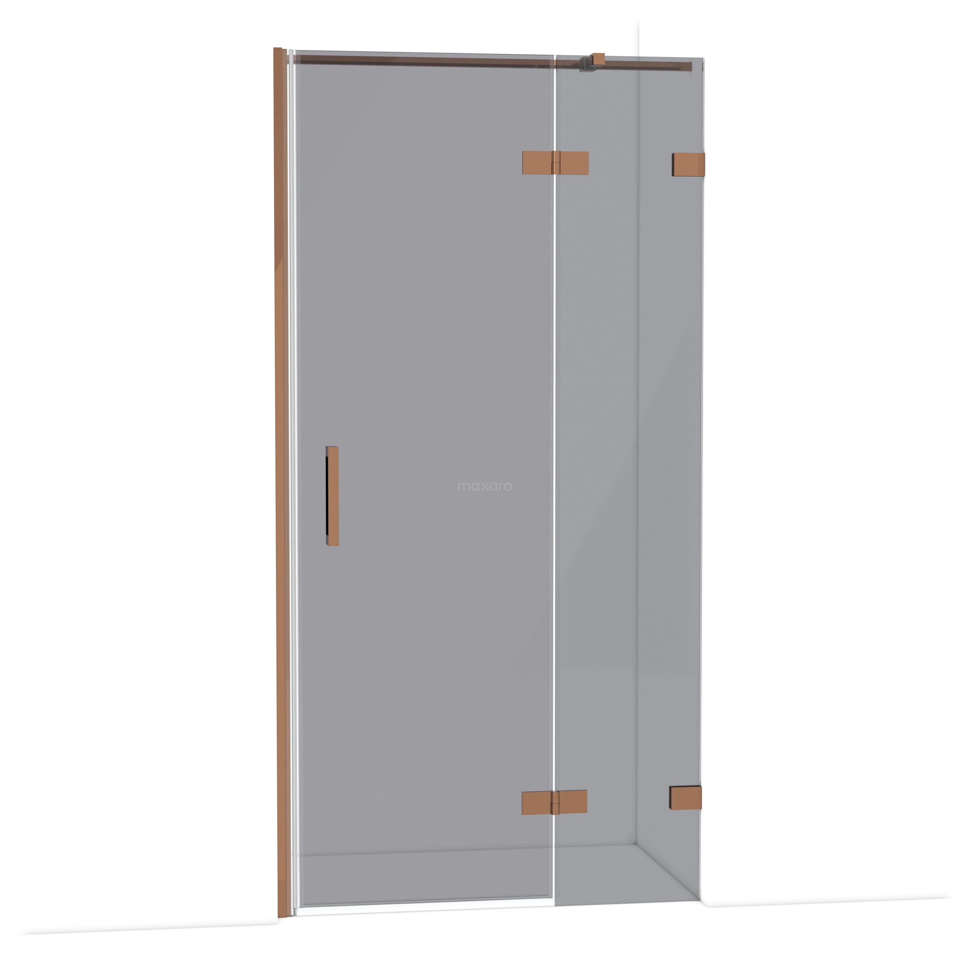 Die Drehtür Diamond 100 cm ist ideal zum Abschließen Ihres Duschbereichs. Sie hat ein markantes Design aus glänzendem Kupfer und ist mit hochwertigen Scharnieren, einer Zweipunktbefestigung und einem vertikalen Griff ausgestattet. Das Rauchglas sorgt für eine schicke Optik. Durch die Verstellbarkeit lässt sich die Duschtür leicht anpassen. Die Gesamtbreite ist von 101,7 bis 102,7 cm verstellbar.