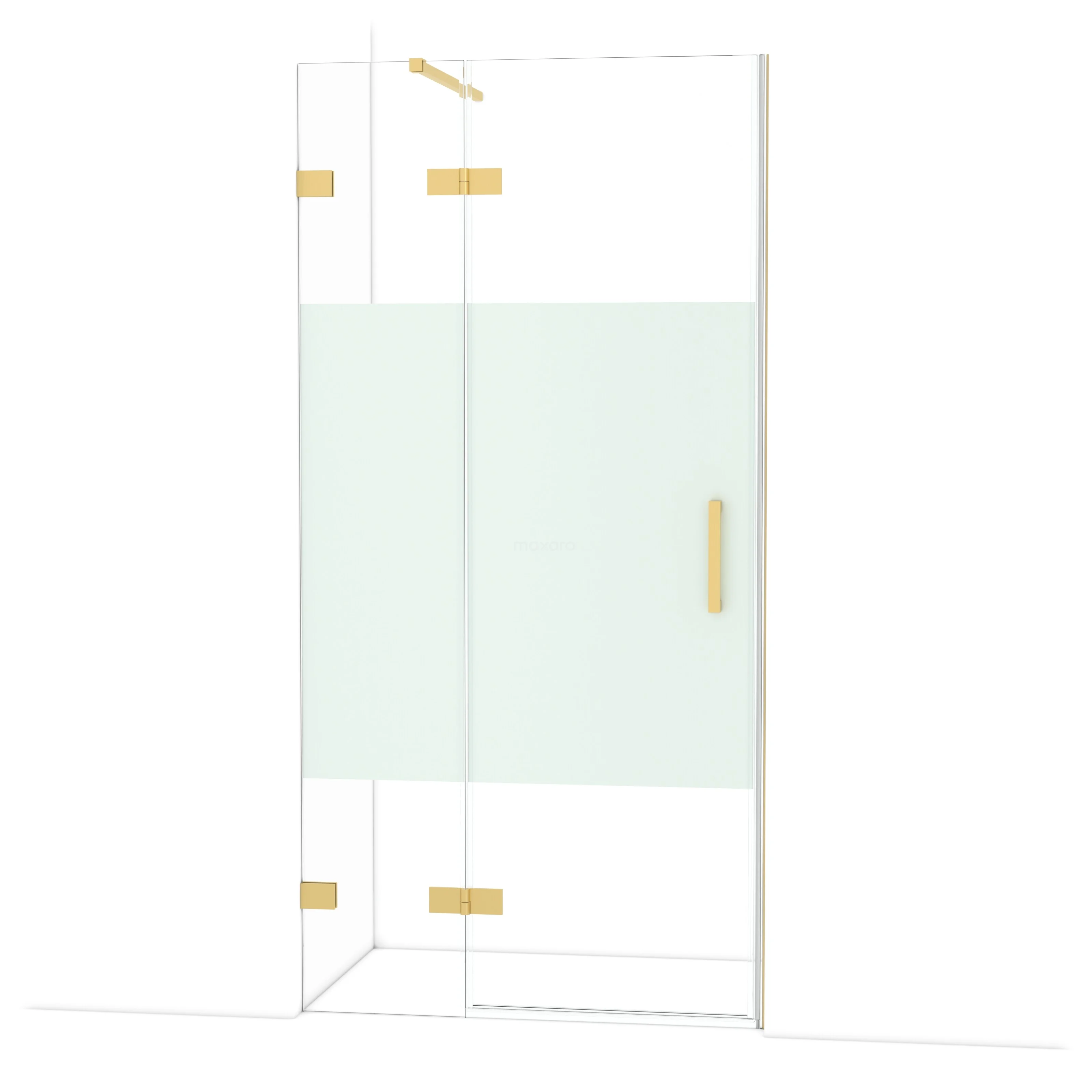 Die Diamond-Drehtür von 100 cm ist ideal, um deine Dusche abzuschließen. Dieses Exemplar hat ein luxuriöses Design in Gold und ist mit hochwertigen Scharnieren, einer Zweipunktbefestigung und einem vertikalen Griff ausgestattet. Das Klarglas mit matter Streifen sorgt für mehr Privatsphäre. Durch die Verstellbarkeit lässt sich die Duschtür leicht anpassen. Die Gesamtbreite ist von 99,7 bis 100 cm verstellbar.