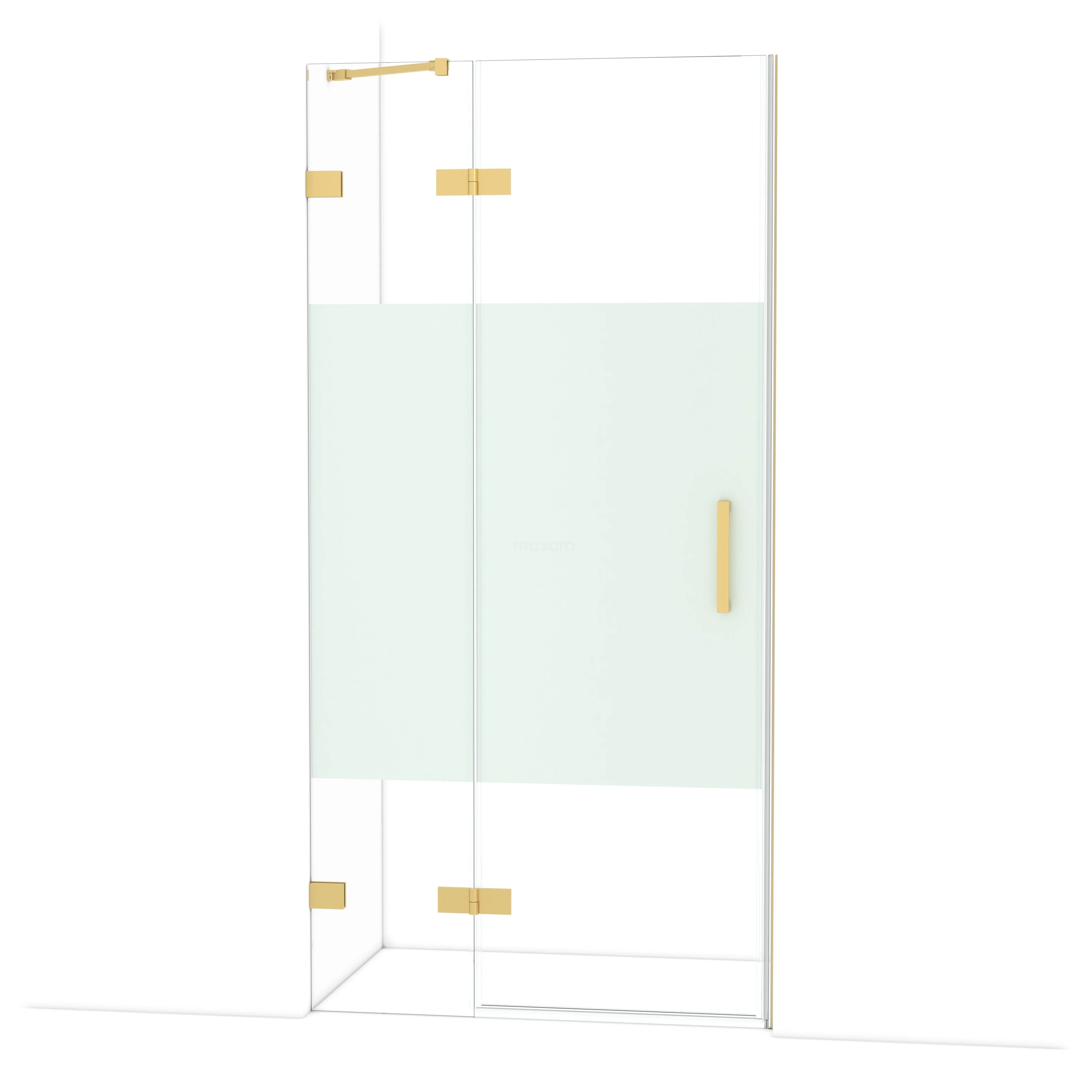 Die Diamond-Drehtür von 100 cm ist ideal, um deine Dusche abzuschließen. Dieses Exemplar hat ein luxuriöses Design in Gold und ist mit hochwertigen Scharnieren, einer Zweipunktbefestigung und einem vertikalen Griff ausgestattet. Das Klarglas mit matter Streifen sorgt für mehr Privatsphäre. Durch die Verstellbarkeit lässt sich die Duschtür leicht anpassen. Die Gesamtbreite ist von 99,7 bis 100 cm verstellbar.