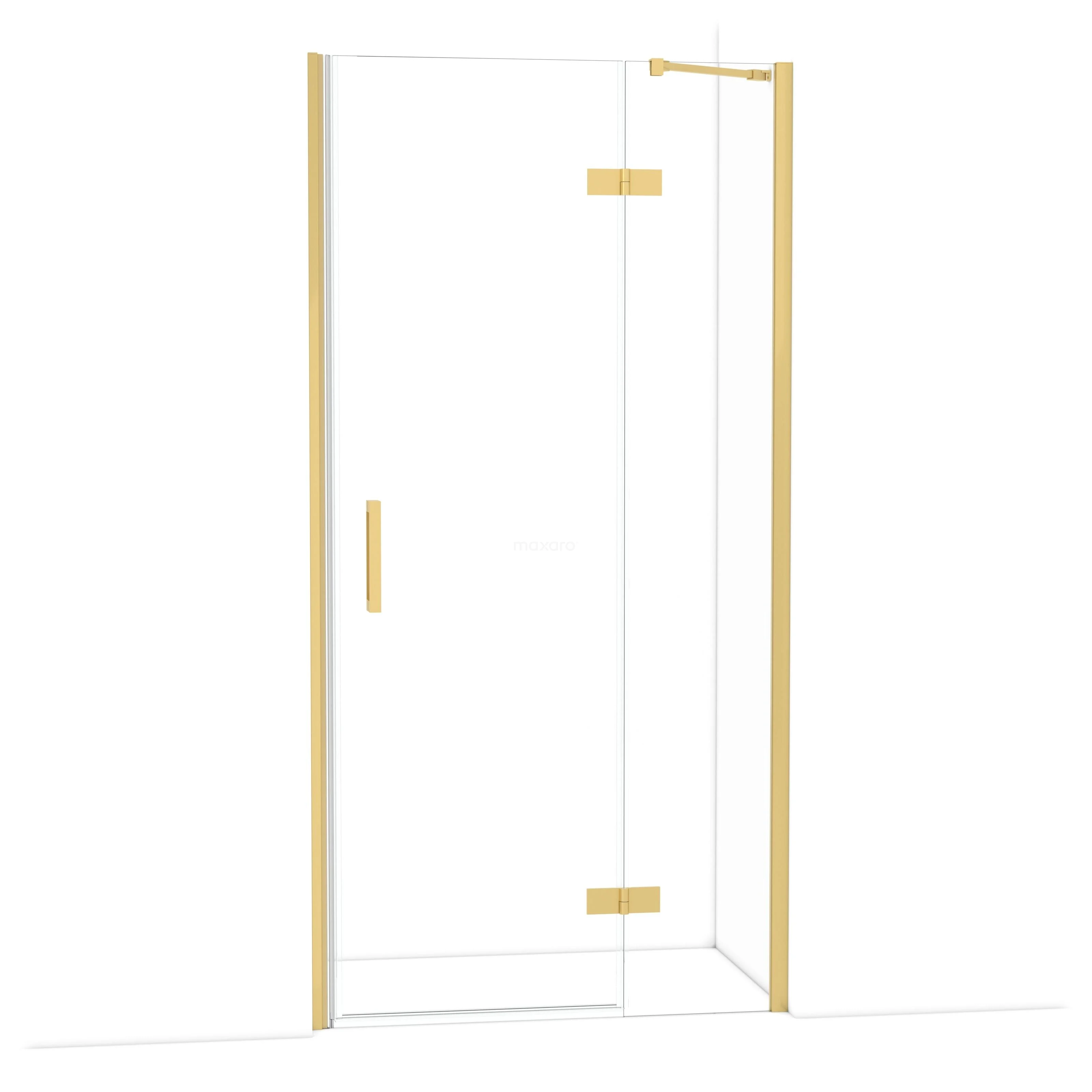 Die Diamond-Drehtür von 100 cm ist ideal, um deine Duschnis abzuschließen. Dieses Exemplar hat ein luxuriöses Design aus Gold und ist mit hochwertigen Scharnieren, Wandprofil und einem vertikalen Griff ausgestattet. Das Klarglas sorgt für ein räumliches Gefühl. Durch die Verstellbarkeit lässt sich die Duschtür leicht anpassen. Die Gesamtbreite ist von 101,8 bis einschließlich 104 cm verstellbar.