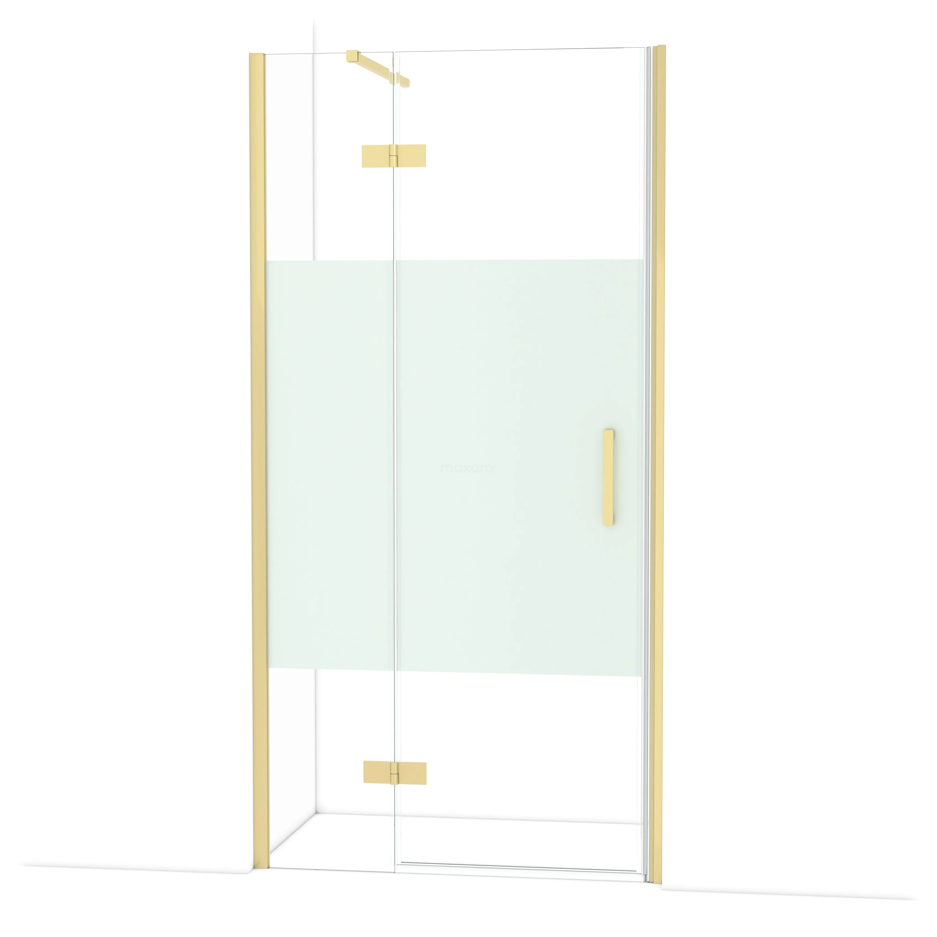 Diamond Duschtür | 100 cm Helles Gold Klar mit matter Streifen Drehtür