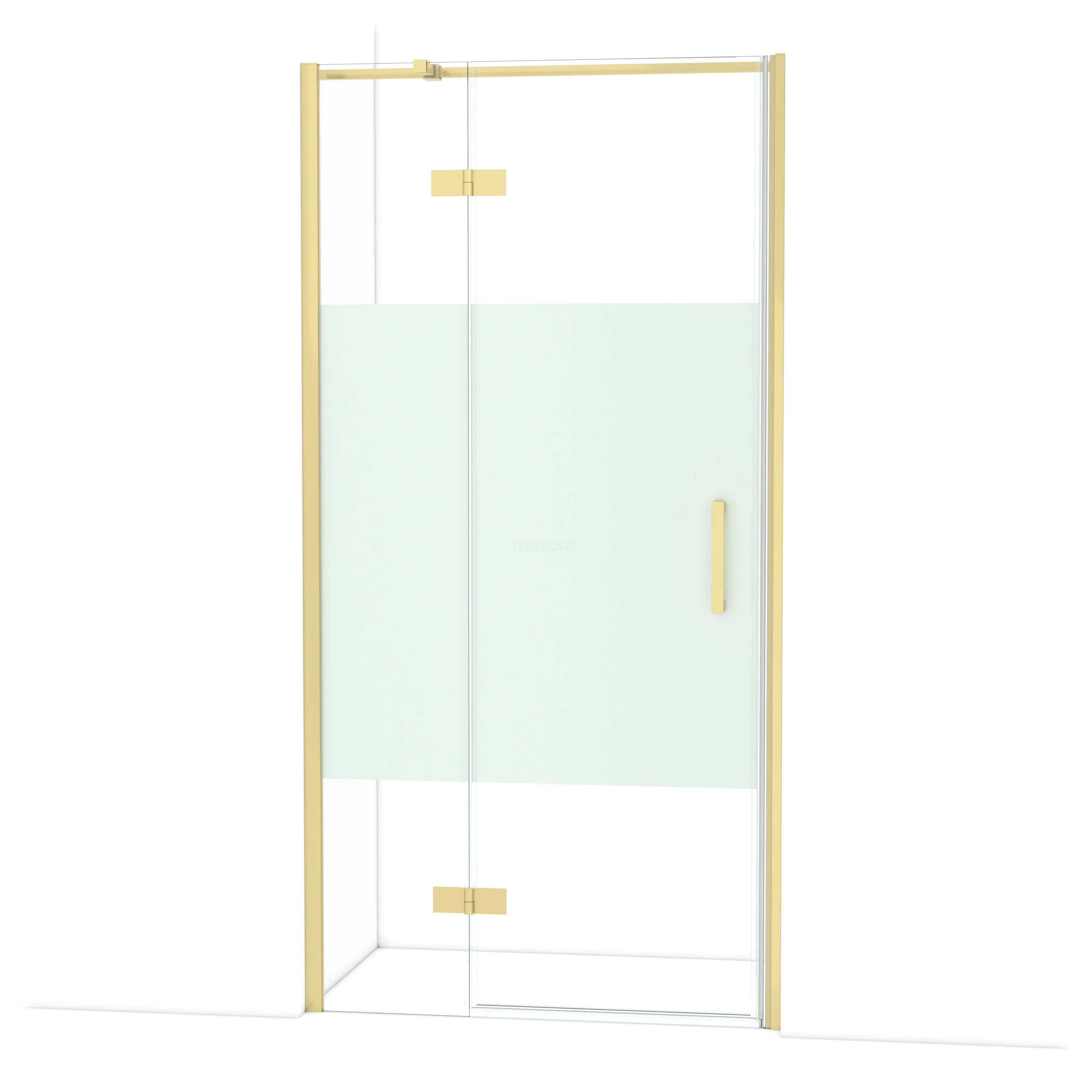 Diamond Duschtür | 100 cm Helles Gold Klar mit matter Streifen Drehtür