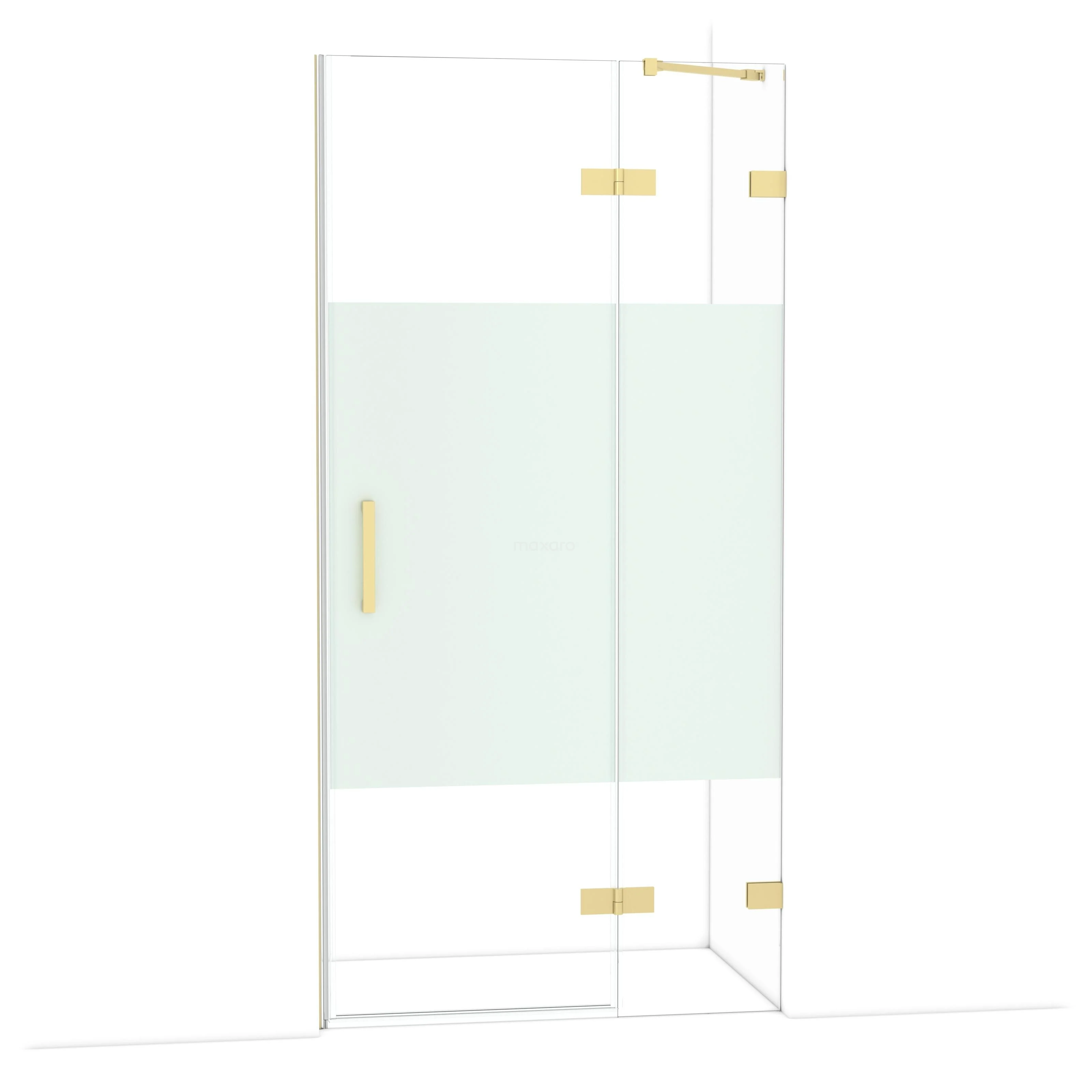 Diamond Duschtür | 100 cm Helles Gold Klar mit matter Streifen Drehtür