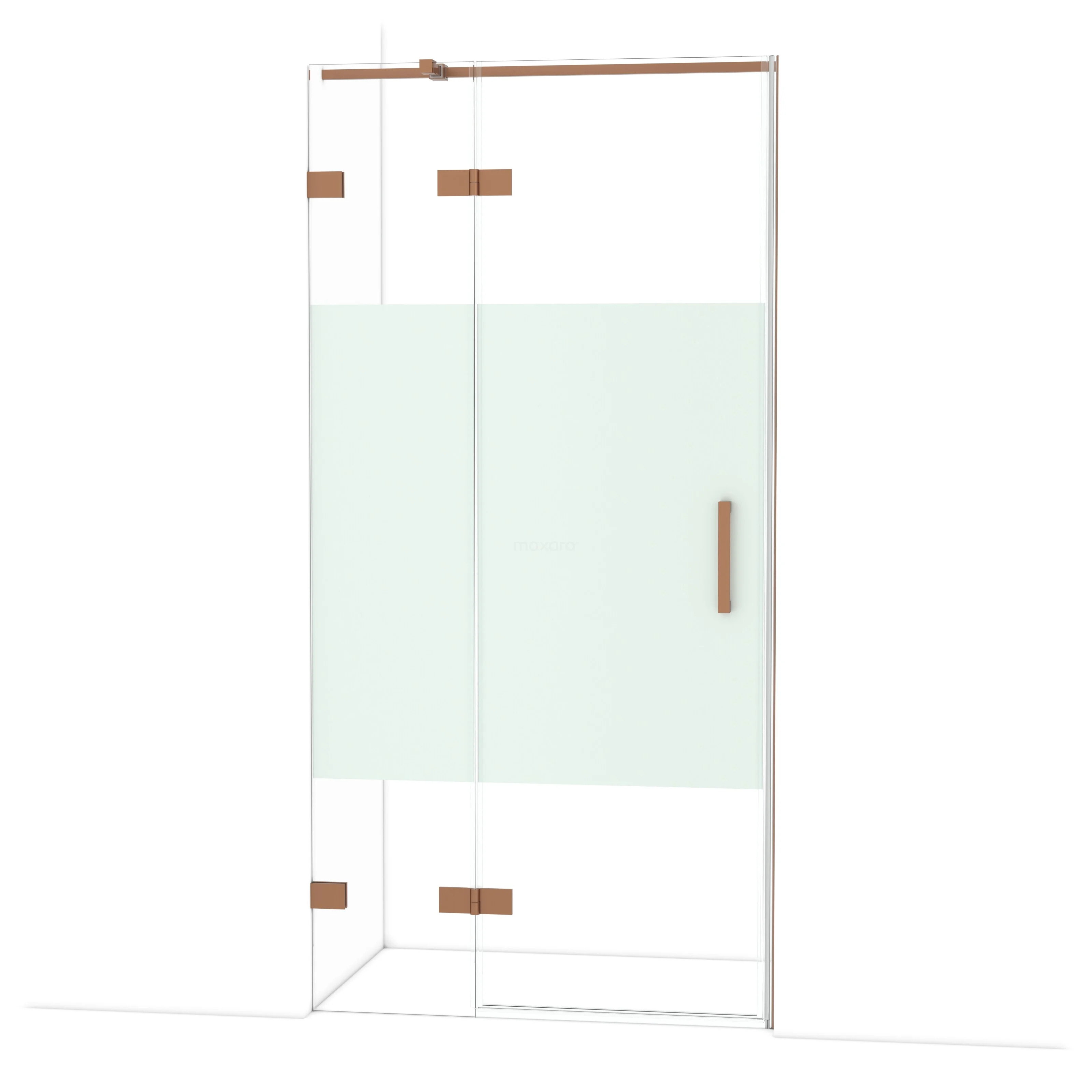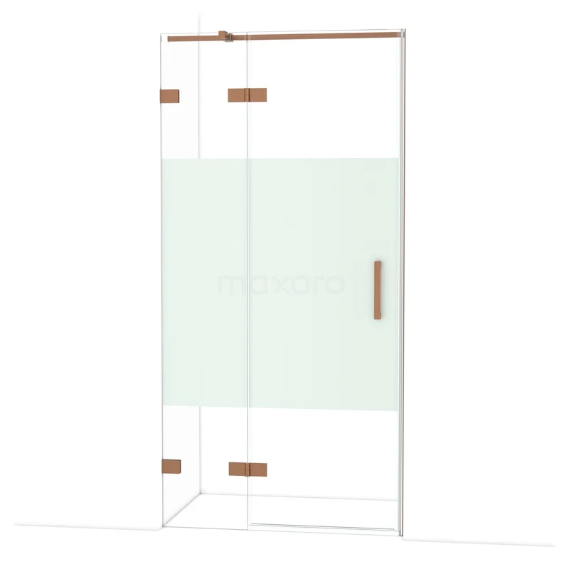Die Drehtür Diamond 100 cm ist ideal für den Abschluss Ihres Duschbereichs. Sie ist in Kupfer ausgeführt und verfügt über hochwertige Scharniere, eine Zwei-Punkt-Befestigung und einen vertikalen Griff. Das Klarglas mit mattem Streifen sorgt für Privatsphäre. Durch die Verstellbarkeit lässt sich die Duschtür leicht montieren. Die Gesamtbreite ist von 99,7 bis 100 cm verstellbar.