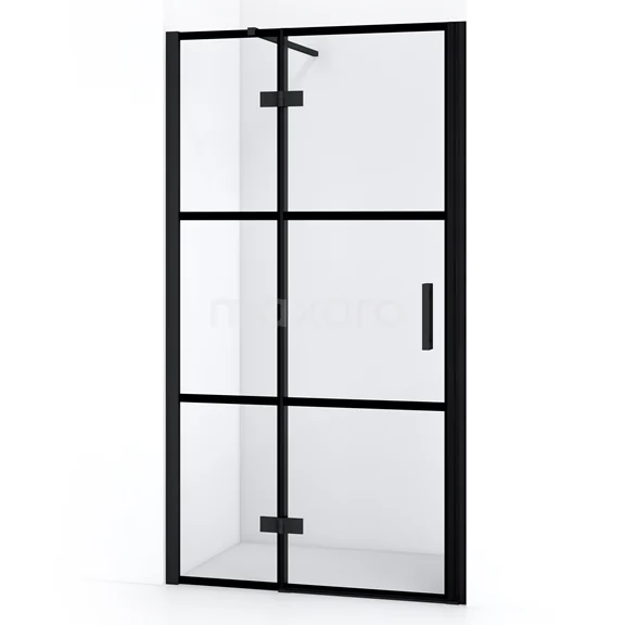 Diamond Duschtür | 100 cm Matt Schwarz Klar mit 4 schwarzen Streifen Drehtür