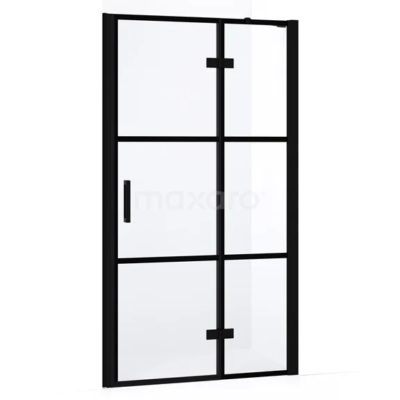 Diamond Duschtür | 100 cm Matt Schwarz Klar mit 4 schwarzen Streifen Drehtür