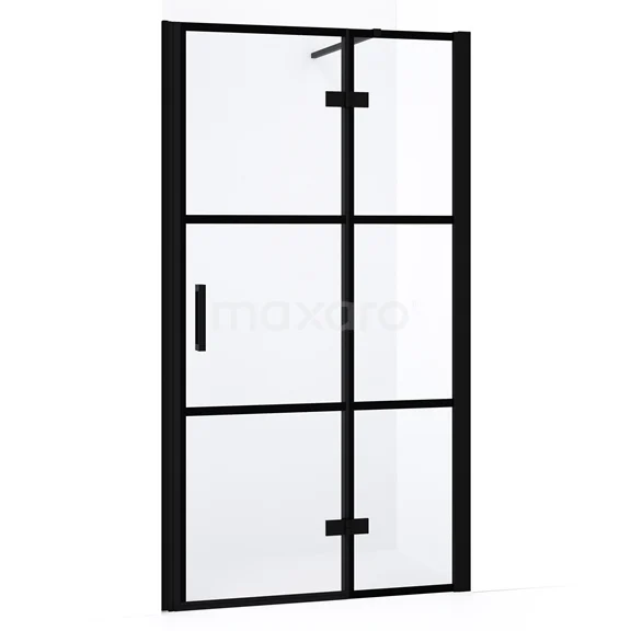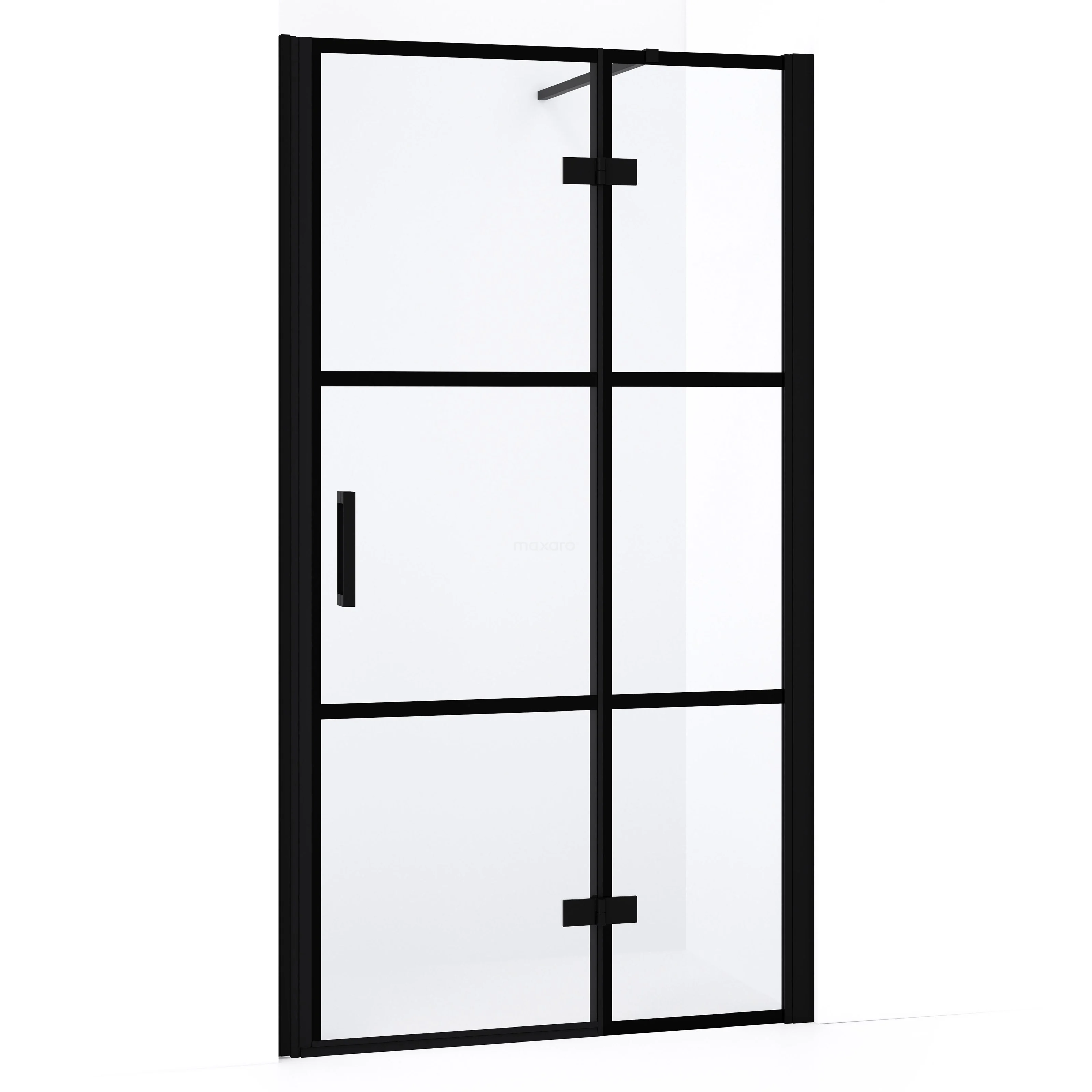 Diamond Duschtür | 100 cm Matt Schwarz Klar mit 4 schwarzen Streifen Drehtür