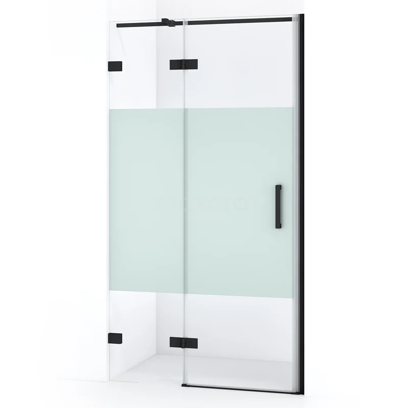 Diamond Duschtür | 100 cm Matt Schwarz Klar mit matter Streifen Drehtür