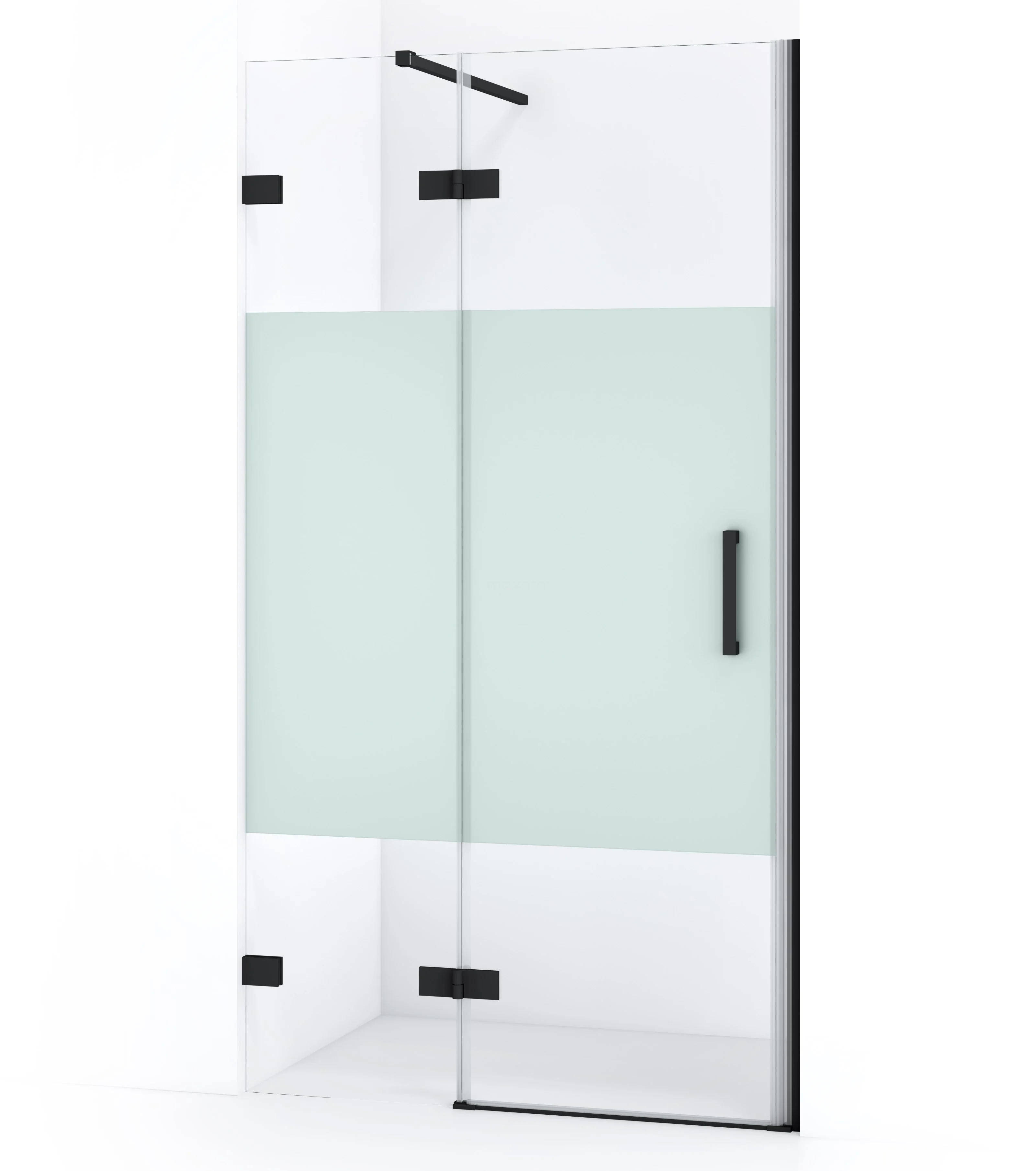 Die Drehtür Diamond 100 cm ist ideal zum Abschließen Ihres Duschbereichs. Sie hat eine robuste, mattschwarze Oberfläche und ist mit hochwertigen Scharnieren, einer Zweipunktbefestigung an der Wand und einem vertikalen Griff ausgestattet. Der mattierte Streifen auf dem Glas sorgt für mehr Privatsphäre. Die Verstellbarkeit macht es einfach, die Duschtür zu montieren. Die Gesamtbreite ist von 99,8 bis 100,1 cm verstellbar.