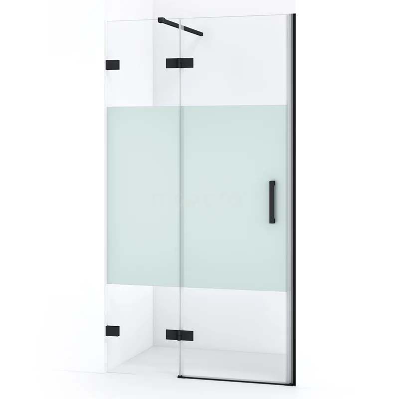 Diamond Duschtür | 100 cm Matt Schwarz Klar mit matter Streifen Drehtür