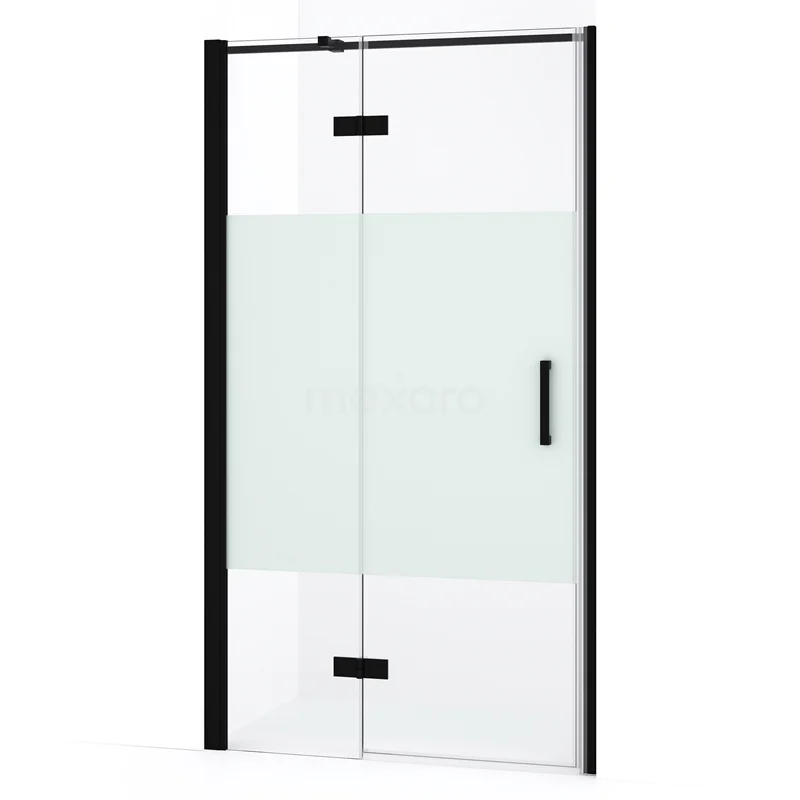 Diamond Duschtür | 100 cm Matt Schwarz Klar mit matter Streifen Drehtür