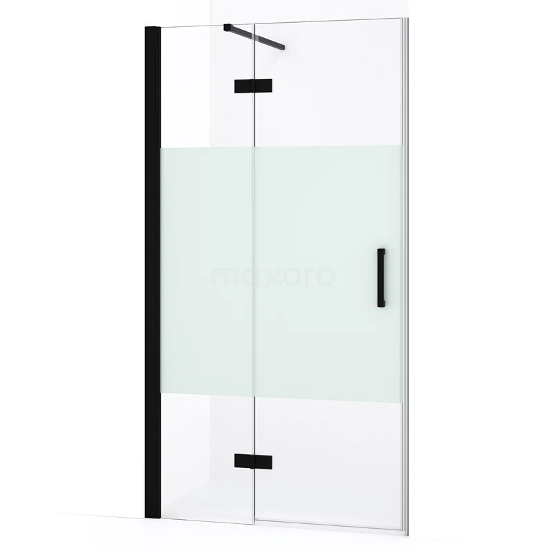 Diamond Duschtür | 100 cm Matt Schwarz Klar mit matter Streifen Drehtür