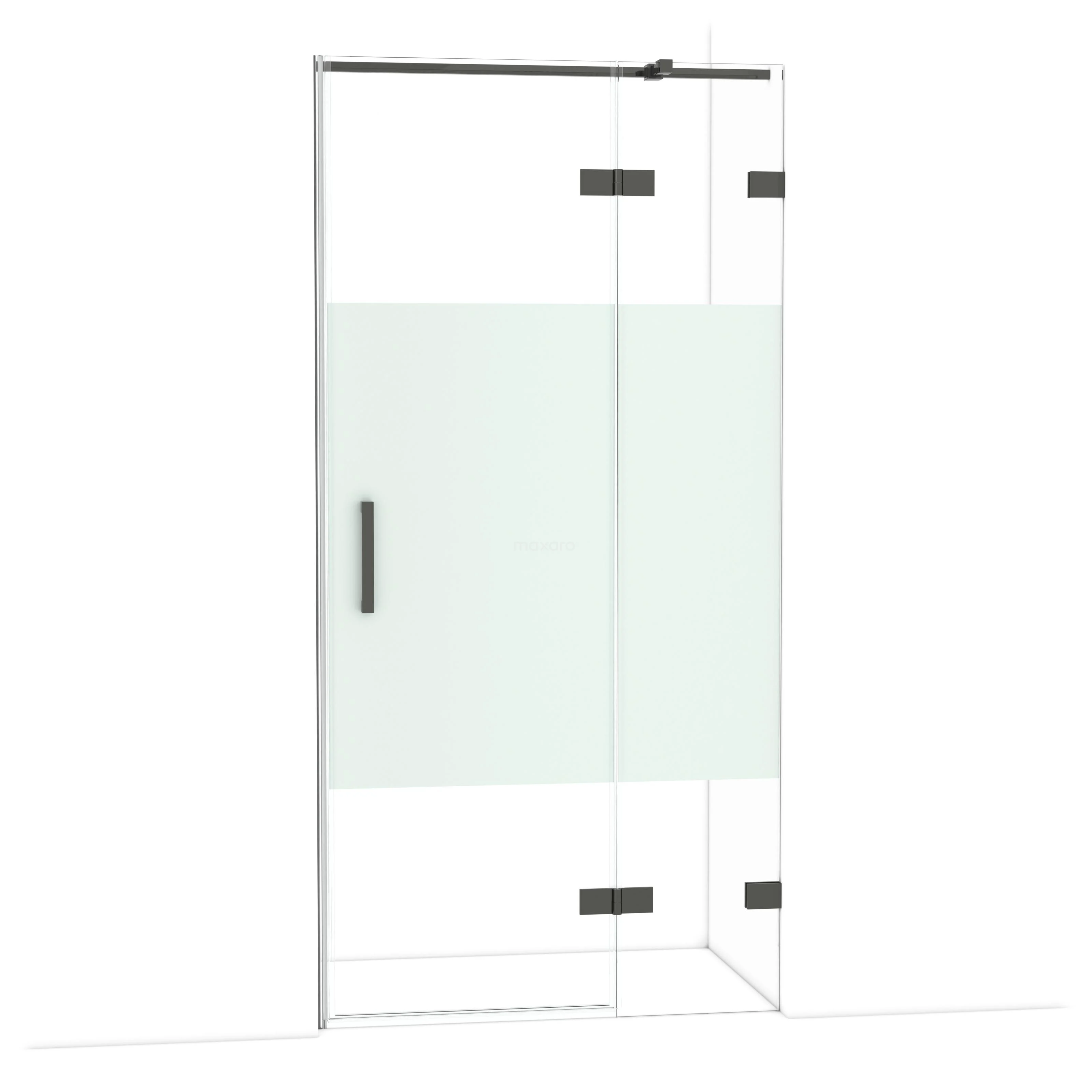 Diamond Duschtür | 100 cm Schwarzchrom Klar mit matter Streifen Drehtür