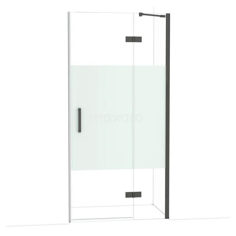 Diamond Duschtür | 100 cm Schwarzchrom Klar mit matter Streifen Drehtür