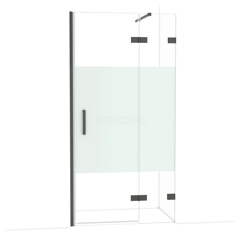 Diamond Duschtür | 100 cm Schwarzchrom Klar mit matter Streifen Drehtür