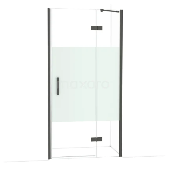 Diamond Duschtür | 100 cm Schwarzchrom Klar mit matter Streifen Drehtür