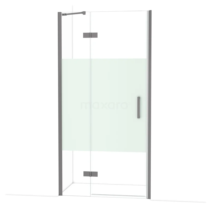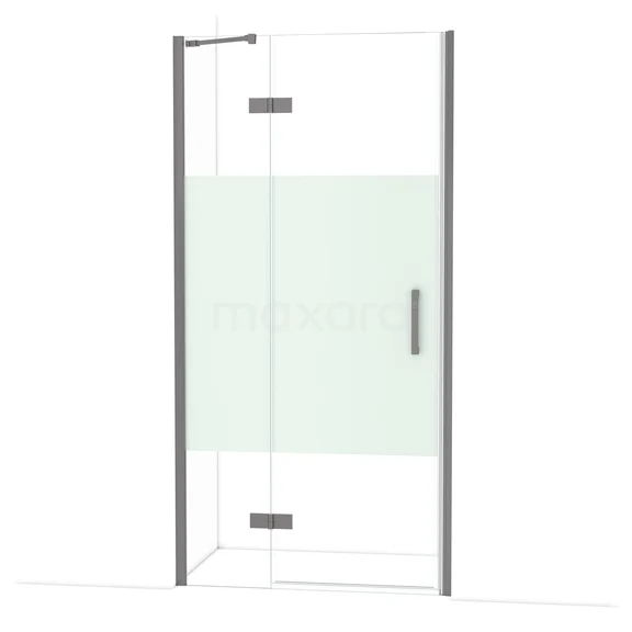Diamond Duschtür | 100 cm Schwarzes Metall Klar mit matter Streifen Drehtür