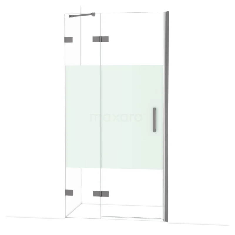 Diamond Duschtür | 100 cm Schwarzes Metall Klar mit matter Streifen Drehtür