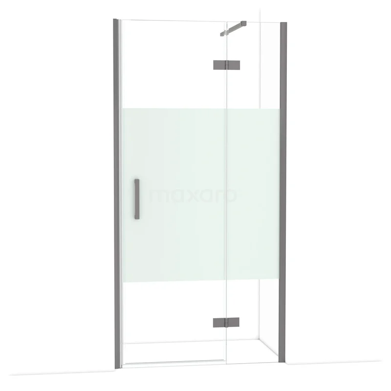 Diamond Duschtür | 100 cm Schwarzes Metall Klar mit matter Streifen Drehtür