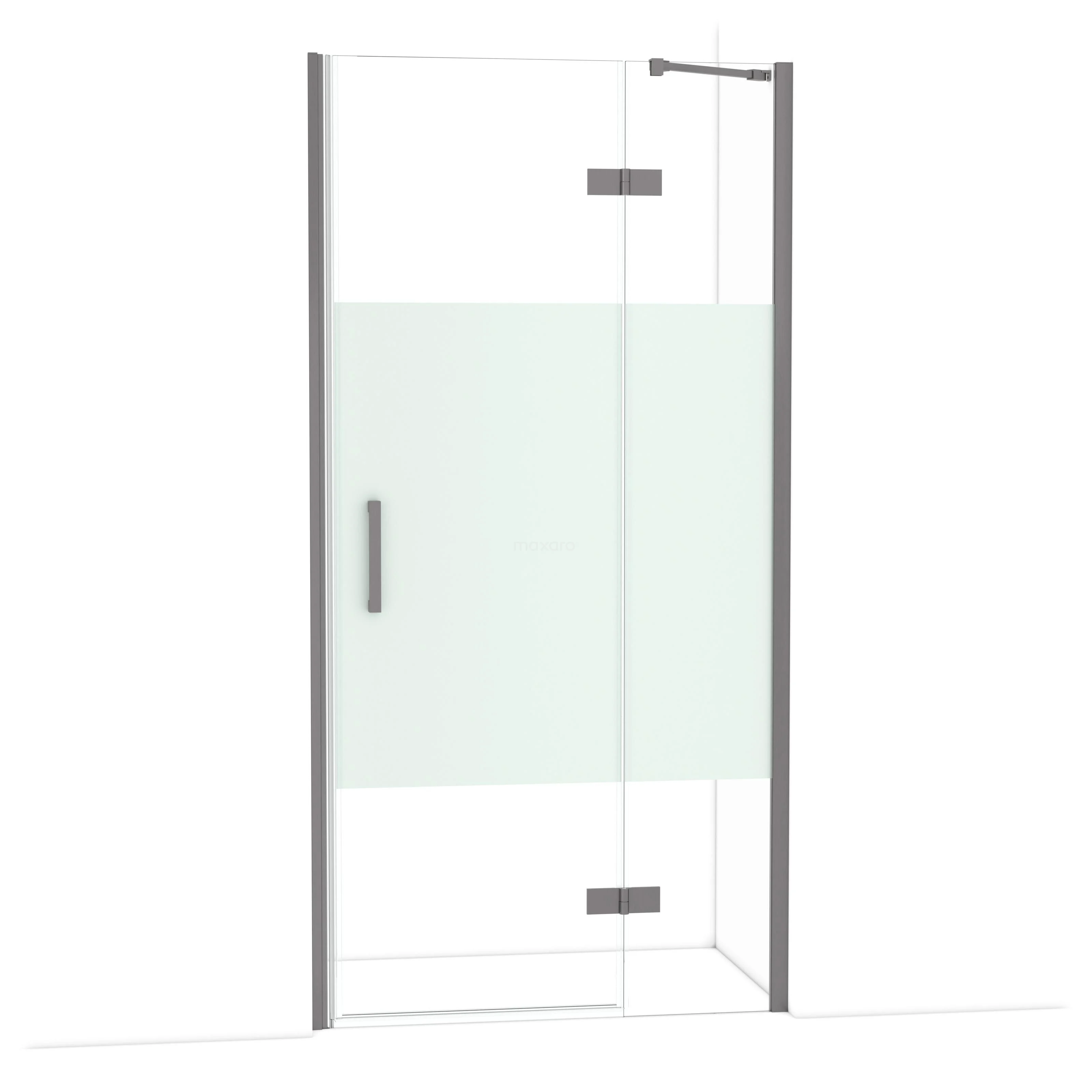 Diamond Duschtür | 100 cm Schwarzes Metall Klar mit matter Streifen Drehtür